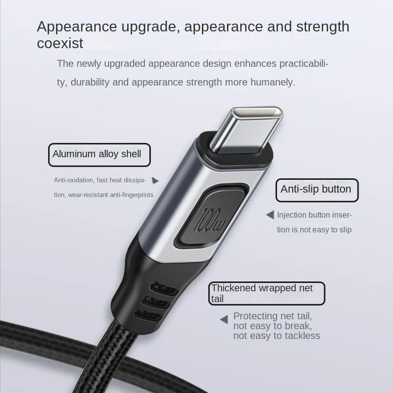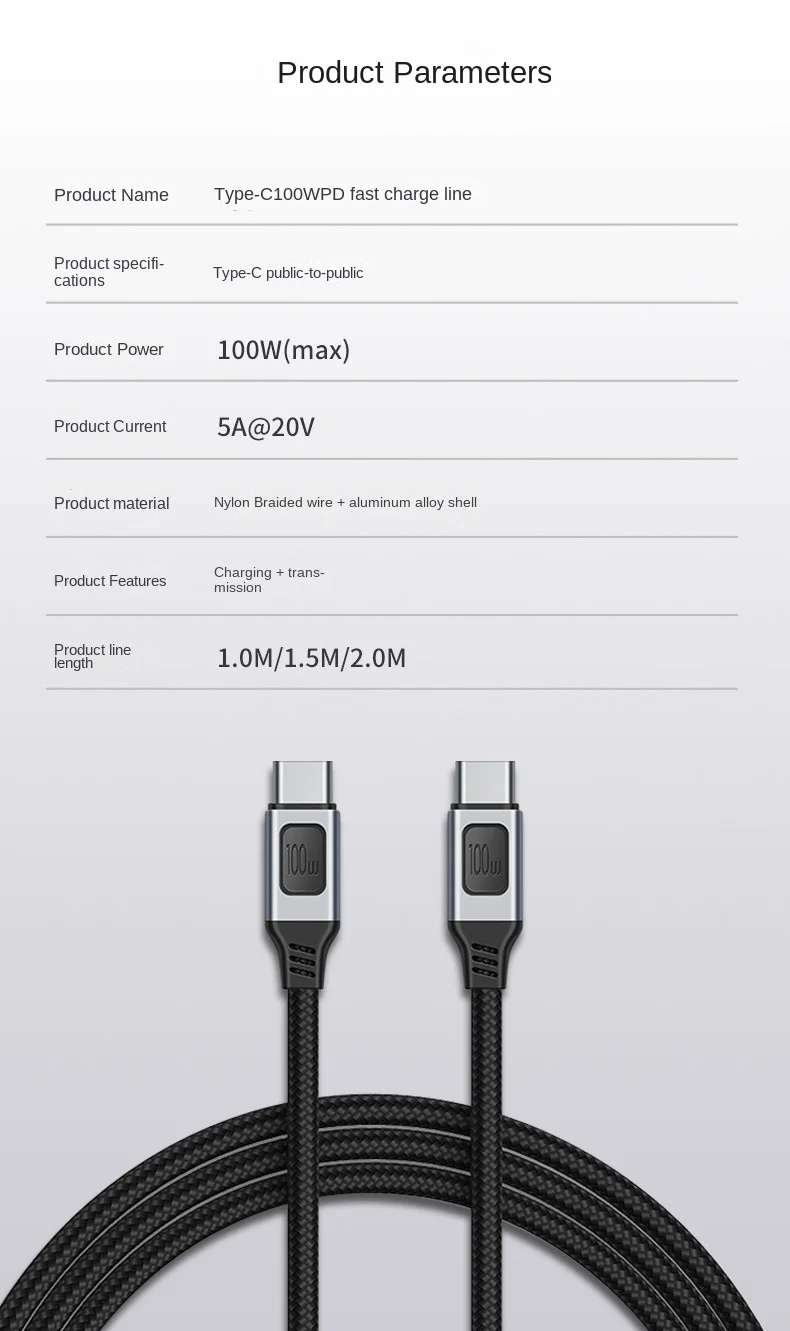 Características: 1. Con adaptador de corriente de la red, como 18W/30W/45W/60W/61W/ 87W/100W. El dispositivo se puede cargar hasta 89% en 45 minutos, y la velocidad de transmisión de datos es de hasta 480Mbps. 2. Extremo USB-C estirado sin costuras de una pieza, con mayor resistencia a la presión. 3. Los Pines de cobre de alta conductividad se utilizan para garantizar que no se sobrecaliente durante la alta corriente; la carcasa de aleación de aluminio adopta el proceso de oxidación de microarco, y la apariencia de la carcasa es más dura y más resistente al desgaste. 4. Este Cable de C a C tiene una protección incorporada contra sobrecorriente/sobrecalentamiento/cortocircuito para proteger su equipo de daños. 5. El alambre trenzado de nailon anti-enredo combinado con la carcasa de aleación de aluminio es firme y confiable. Es una excelente opción para un USB-C duradero y rentable a los cables de la USB-C. Especificación: Nombre del producto: cable de carga rápida Especificaciones del producto: tipo C macho a macho Potencia del producto: 100W (máx.) Corriente del producto: 5A @ 20V Color: negro Material del producto: alambre trenzado de nailon + carcasa de aleación de aluminio Función del producto: carga + transmisión Longitud de la línea del producto: 1,0 M/1,5 M/2,0 M Especificaciones del producto: 2, 2, 2, 1, 2, 2 Lista de embalaje Cable de carga * 1
