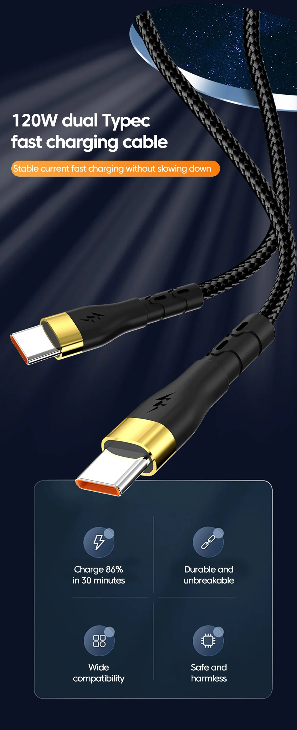 Comprar Cable de carga rápida PD 120W Dual tipo C Cable de carga rápida tipo C a tipo C para iPhone 15 Xiaomi Samsung Huawei Cable USB C