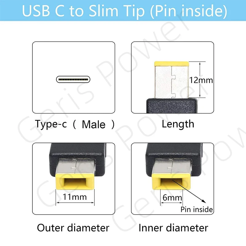 Comprar Cable de carga rápida PD de 135W, adaptador USB C para portátil Lenovo ThinkPad T440p, T530, T540p, W540, Y50, Y70, G500, G405, convertidor tipo C