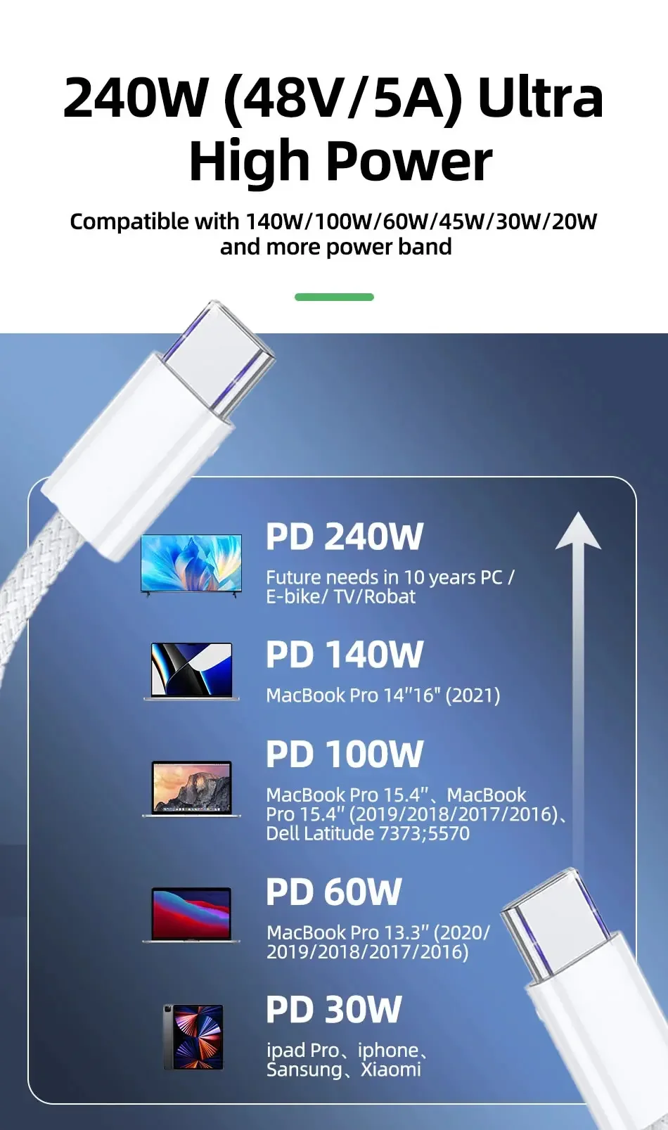 Característica: 48V/5A PD240W (máx.) / 480Mbps /PD140W / PD100W / PD60W