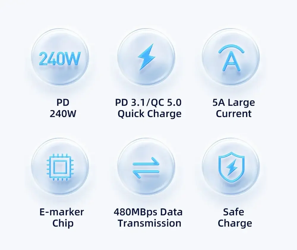Comprar Cable de carga rápida PD 240W USB C a USB C, Compatible con lPhone 15 Series, lPad Pro, MacBook Pro 2M