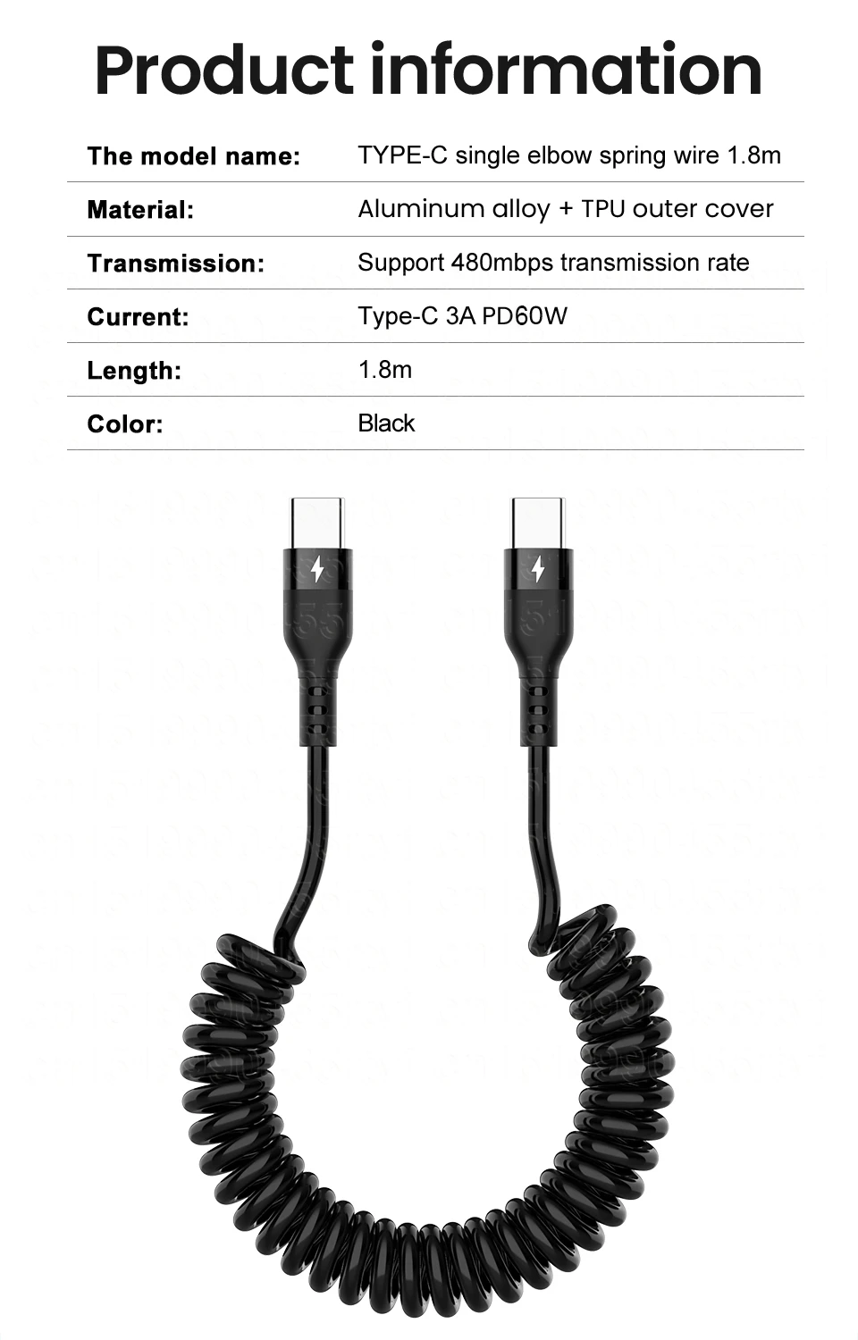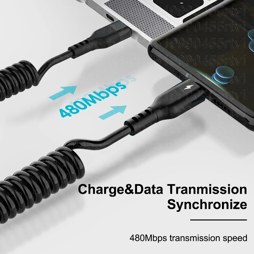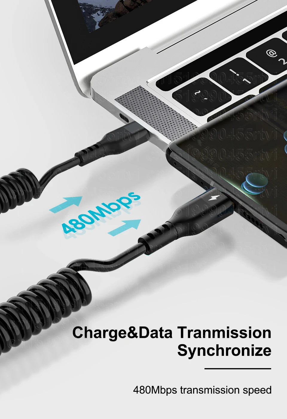 PD 60W 3A Cable de carga rápida USB tipo C Cable escalable adecuado para Samsung Huawei Xiaomi Cable de datos del cargador de computadora móvil