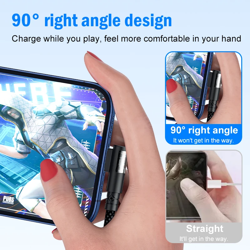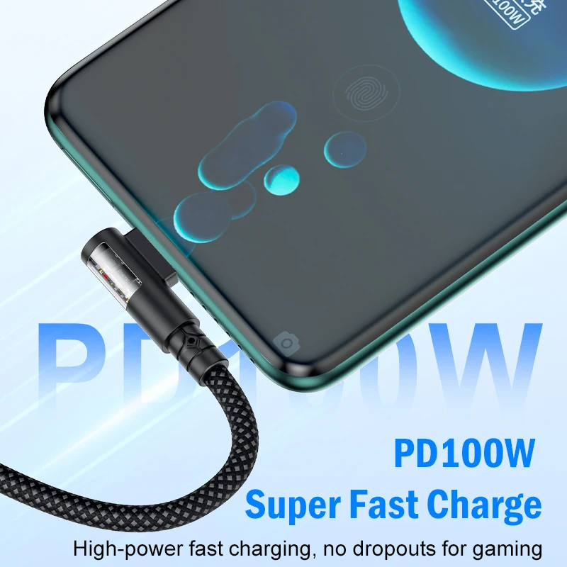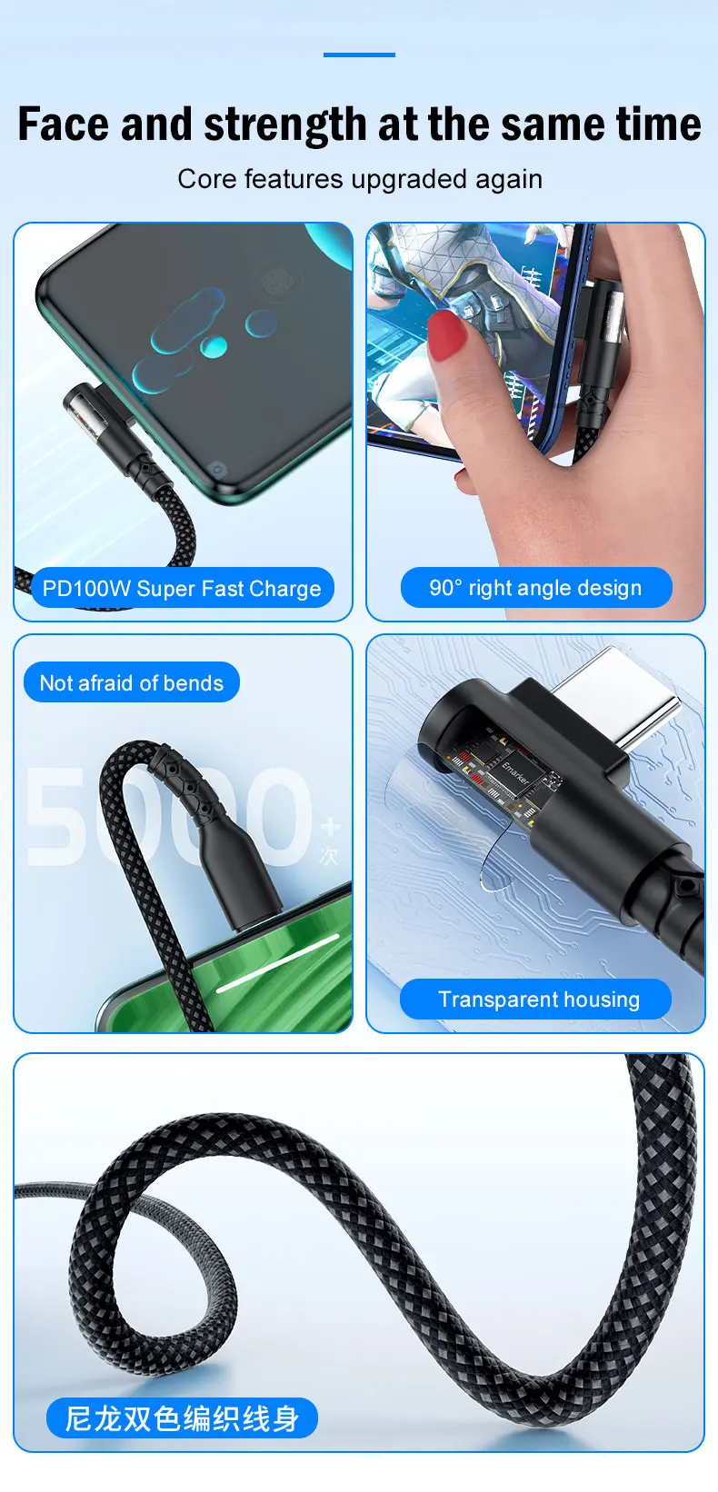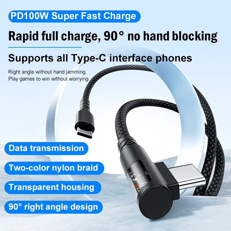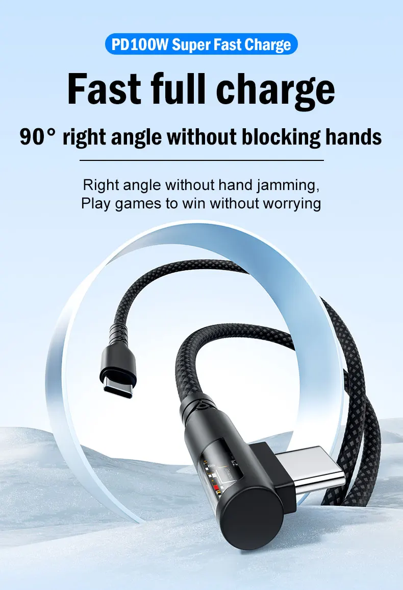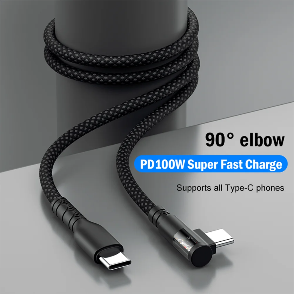 Comprar Cable de carga rápida PD tipo C a USB C de 100W tipo C a tipo C 90 ° Cable de Datos de Codo para iPhone Macbook Samsung Xiaomi Huawei