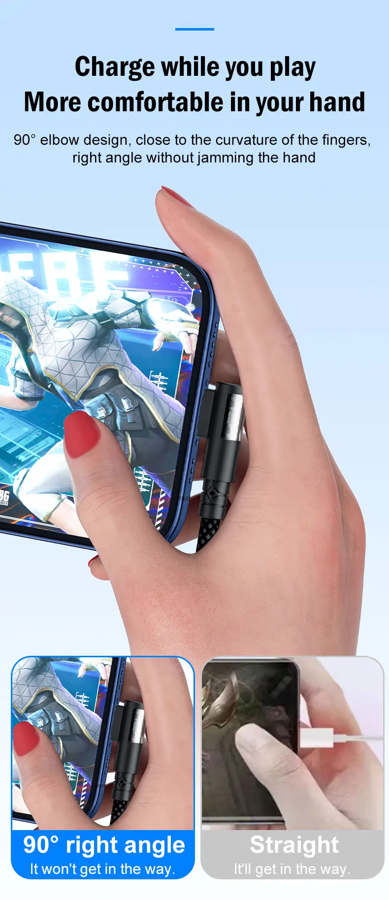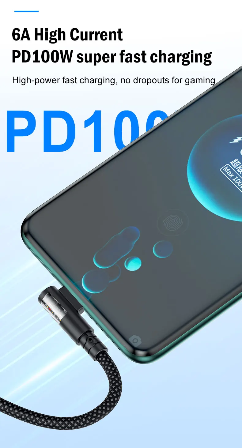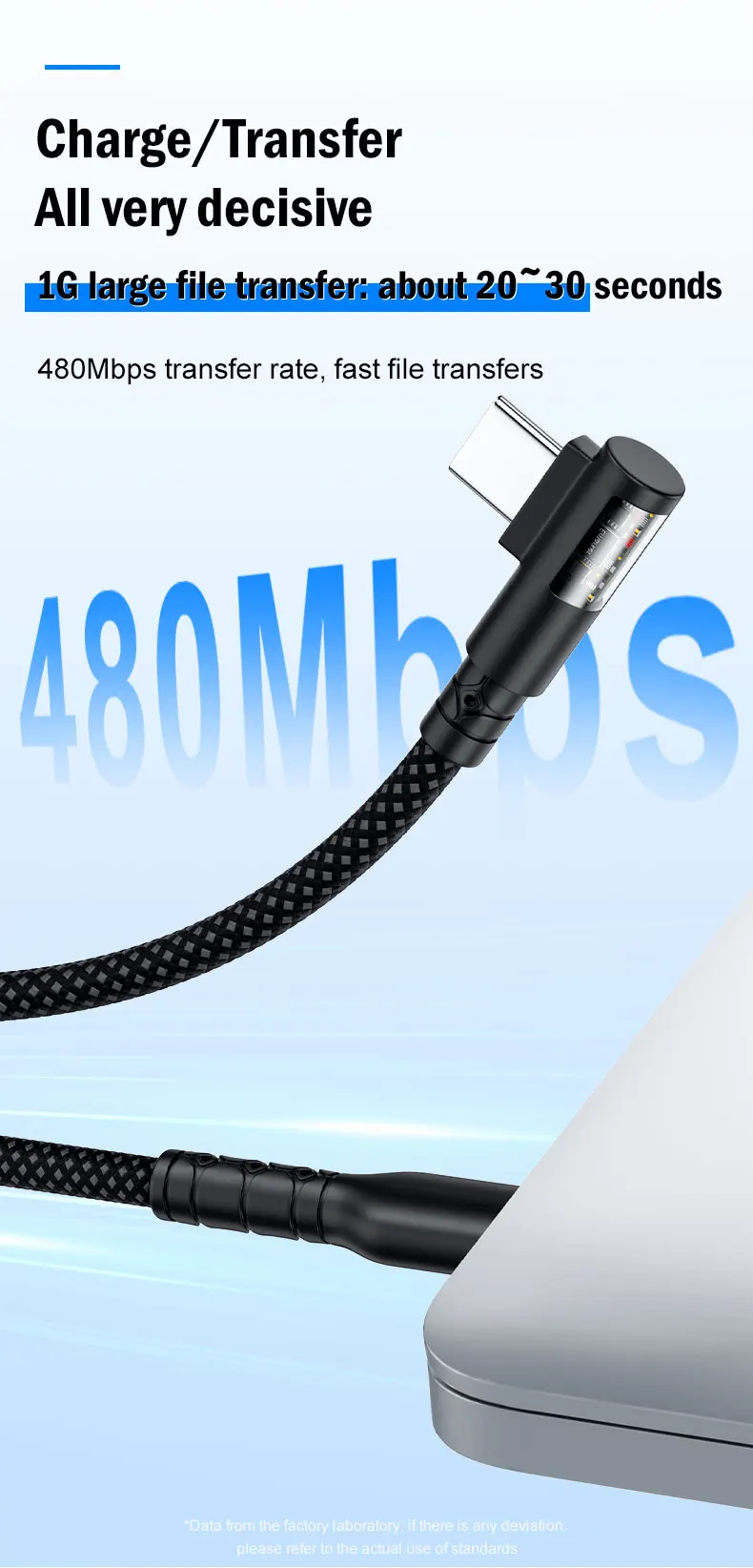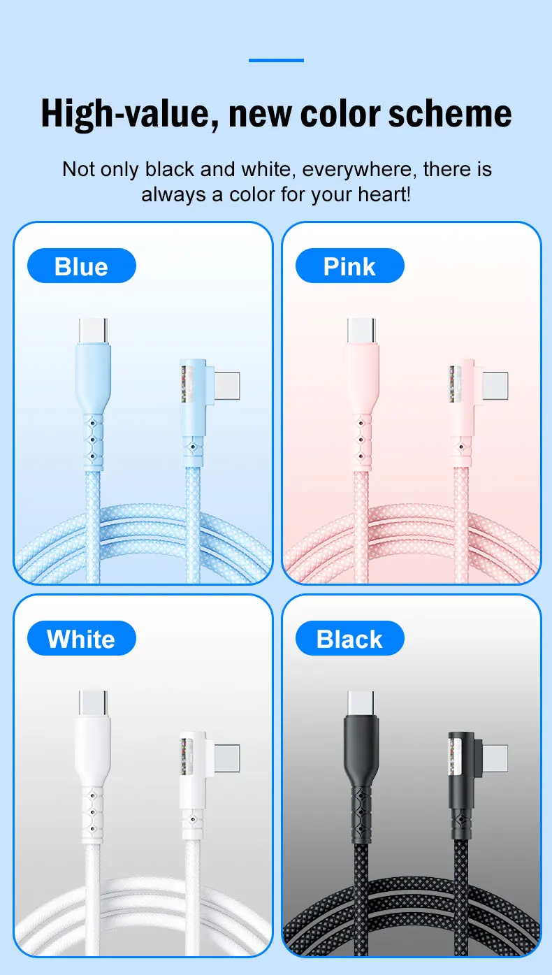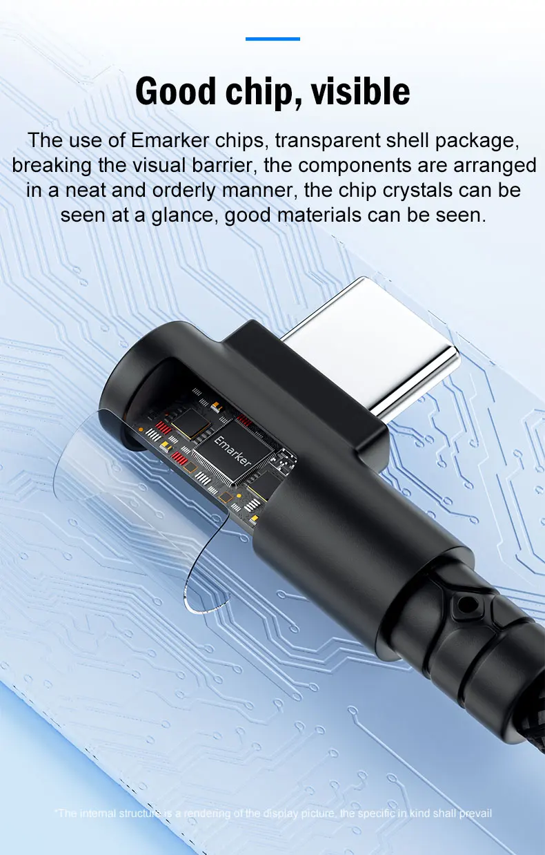 Comprar Cable de carga rápida PD tipo C a USB C de 100W tipo C a tipo C 90 ° Cable de Datos de Codo para iPhone Macbook Samsung Xiaomi Huawei