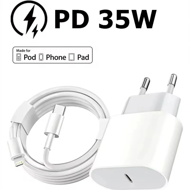 Cable de carga rápida PD USB-C de 1m, 2m, 3m, 35W, para Apple iPhone 14, 8Plus XS Max 11, 12, 13 Pro, XR, iPadAir, sincronización de datos, línea de carga rápida de la UE