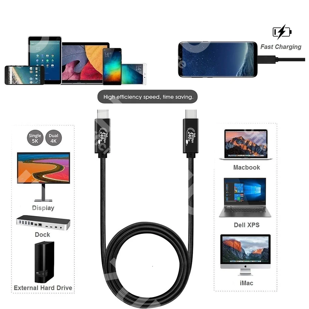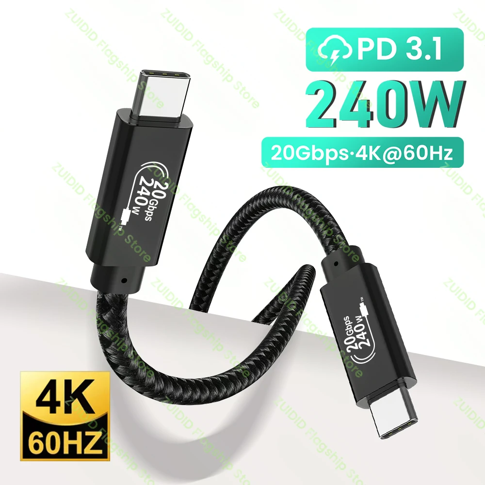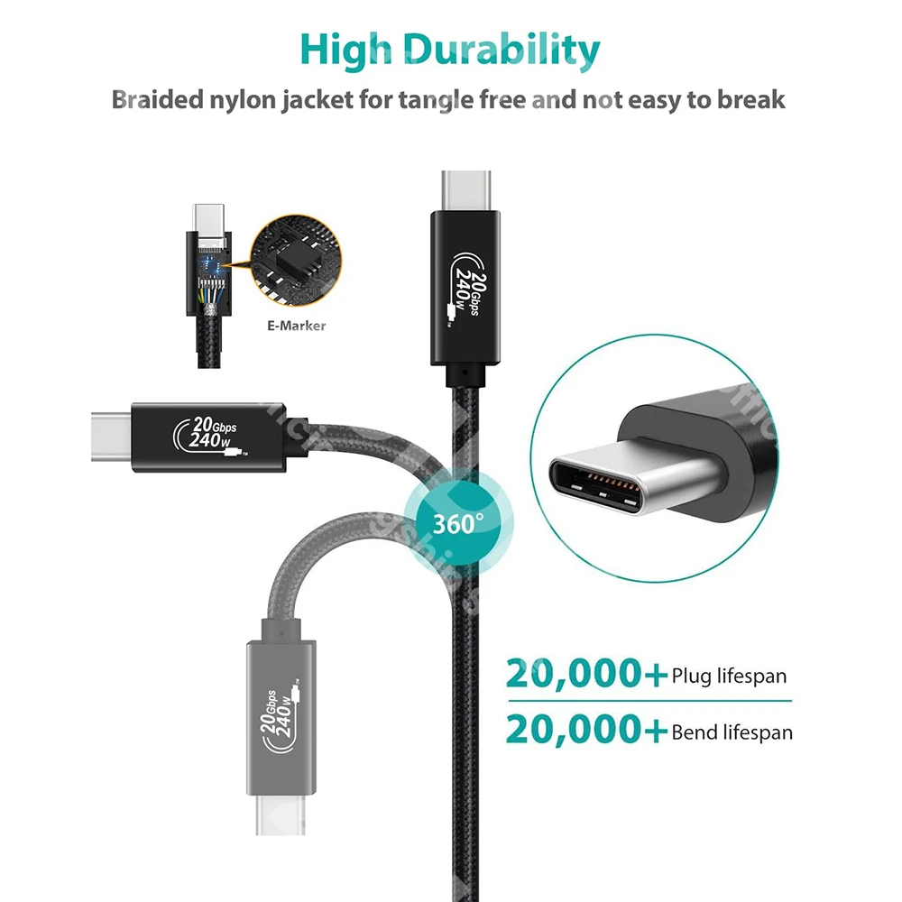 PD240W/100W USB3.2 20Gbps Tipo C a C Cable de carga rápida 4K @ 60Hz para PS5 Nintendo Switch Galaxy S22 MacBook Pro 1/2 M
