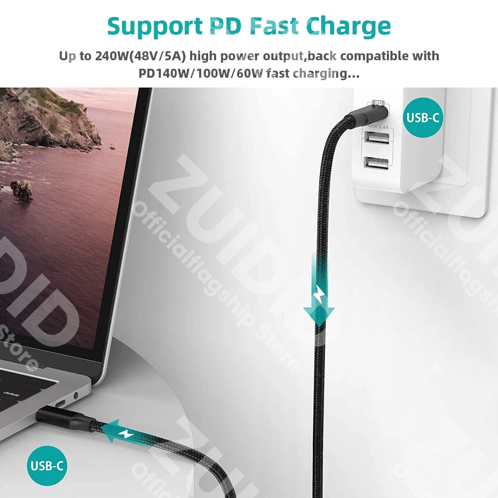 PD240W/100W USB3.2 20Gbps Tipo C a C Cable de carga rápida 4K @ 60Hz para PS5 Nintendo Switch Galaxy S22 MacBook Pro 1/2 M