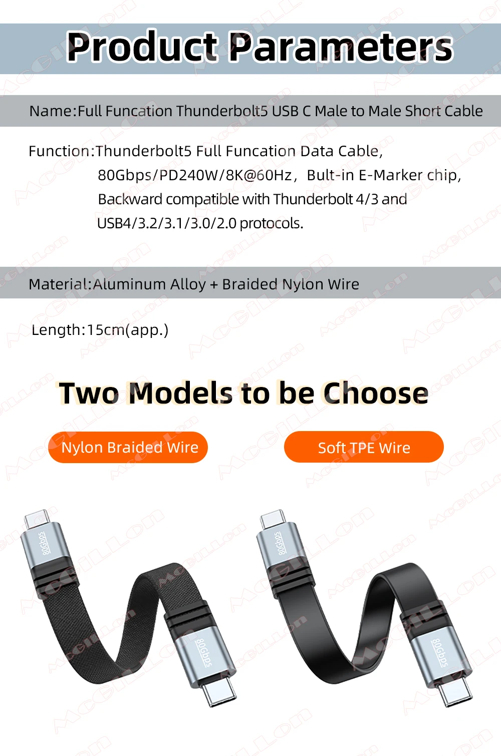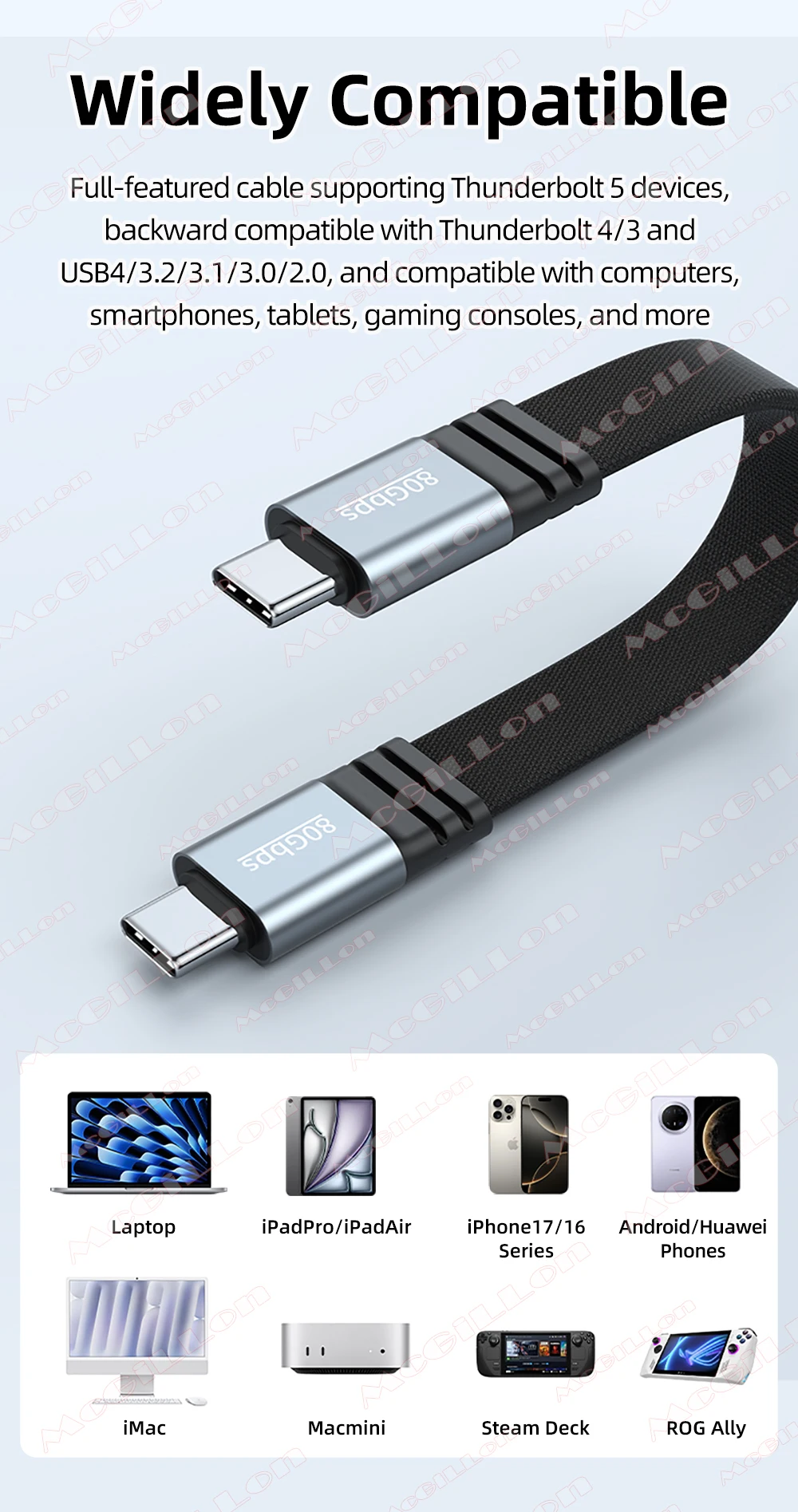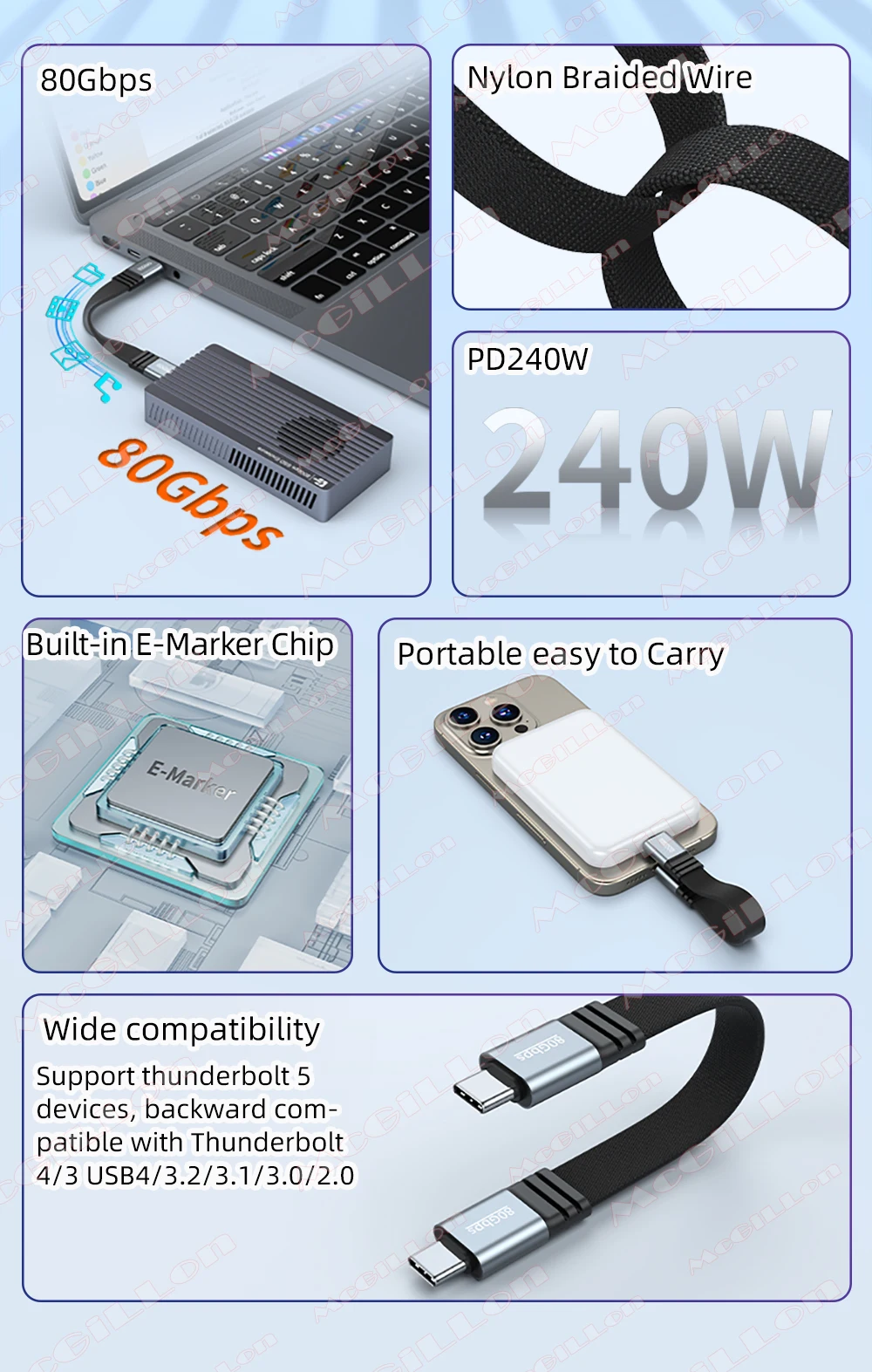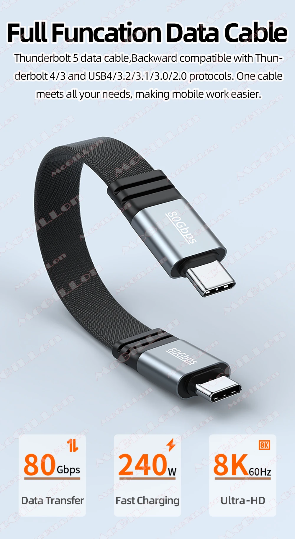 Cable de carga rápida PD240W tipo C a tipo C Cable de vídeo Thunderbolt 5 8k @ 60Hz Cable de datos de 80Gbps adecuado para iPhone 17 Samsung
