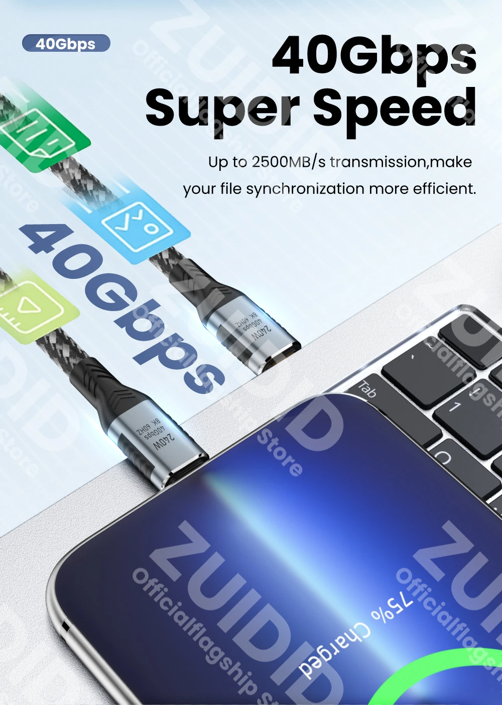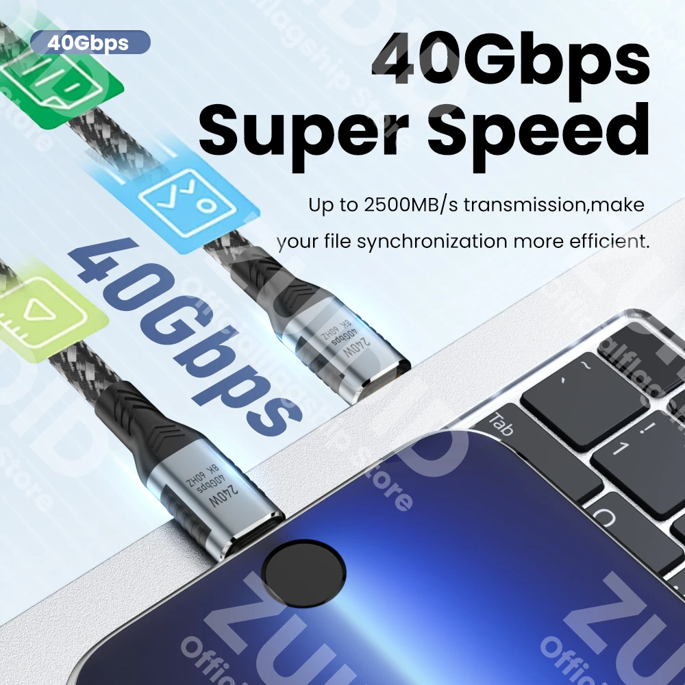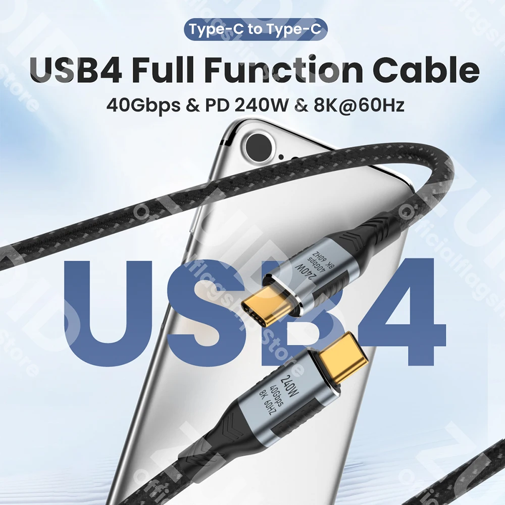 Comprar Cable de carga rápida PD240W USB4.0 40gbps tipo C a C PD3.1/QC4.0/3,0 8K @ 60Hz para PS5 Nintendo Switch Galaxy S22 MacBook Pro