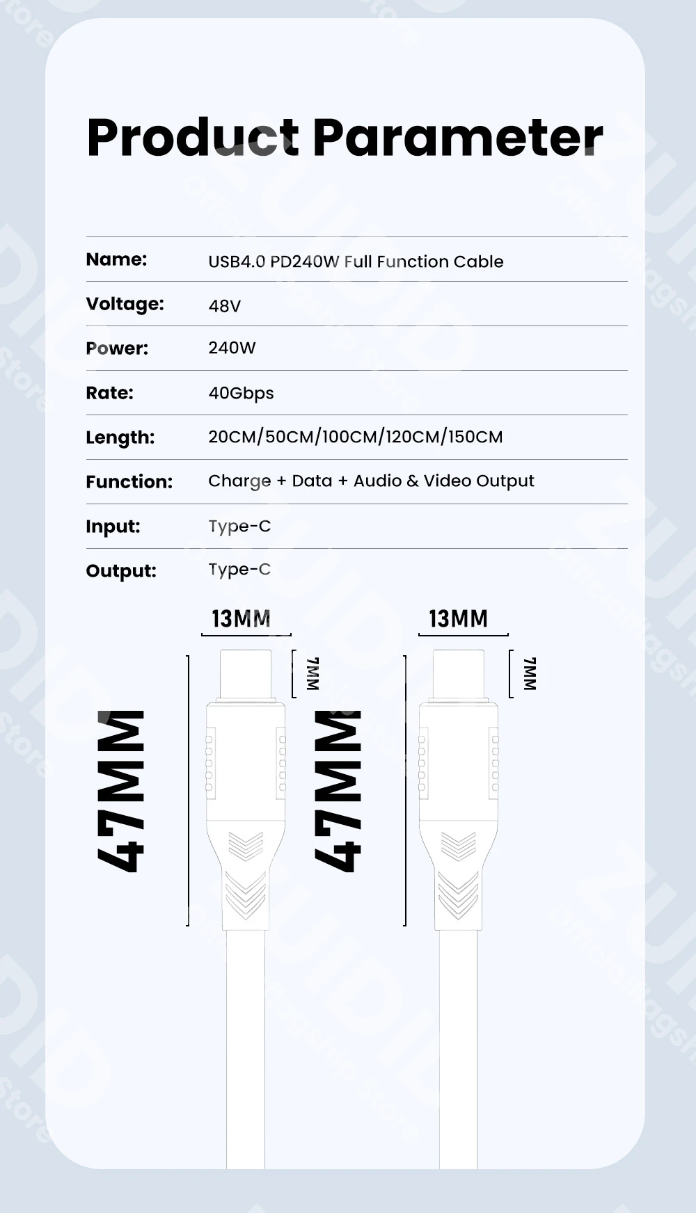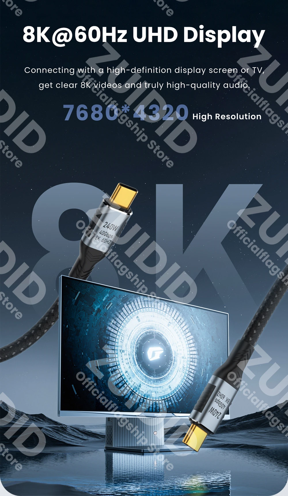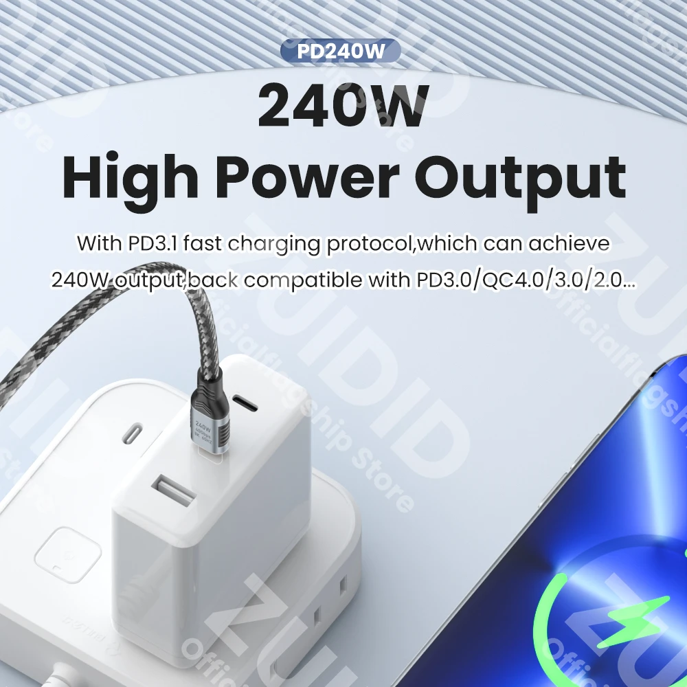 Comprar Cable de carga rápida PD240W USB4.0 40gbps tipo C a C PD3.1/QC4.0/3,0 8K @ 60Hz para PS5 Nintendo Switch Galaxy S22 MacBook Pro