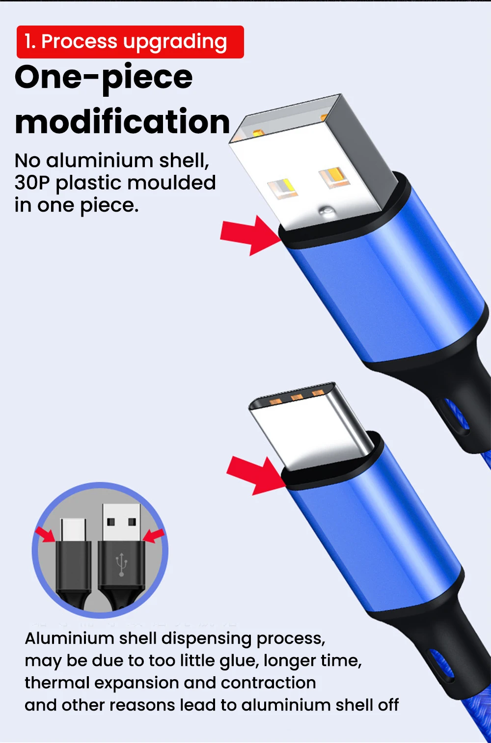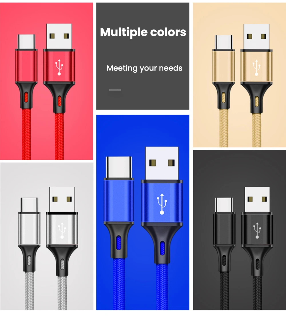 Cable de carga rápida portátil tipo C de 0,25 m 3A Cable de datos de alimentación móvil USB corto