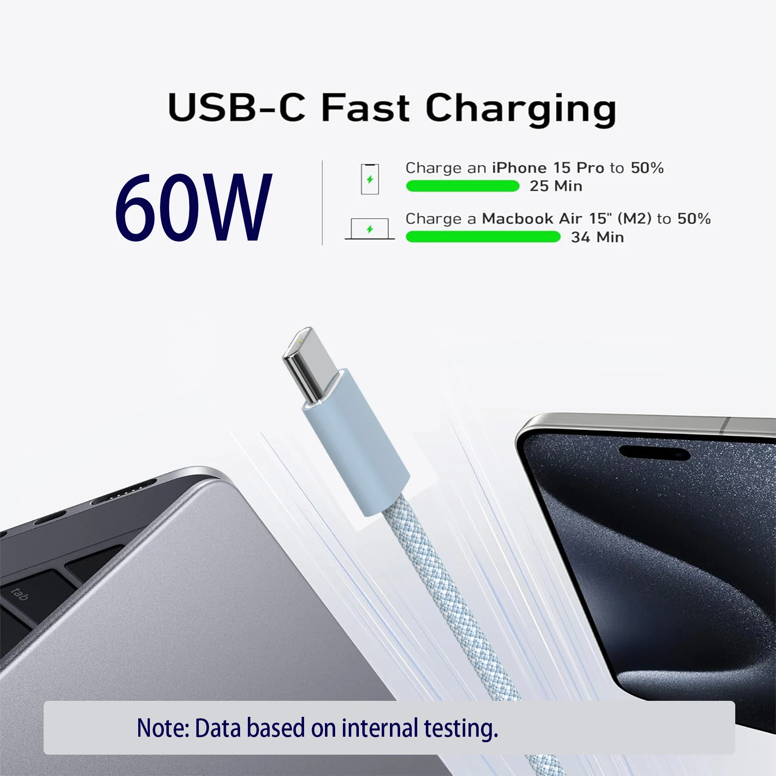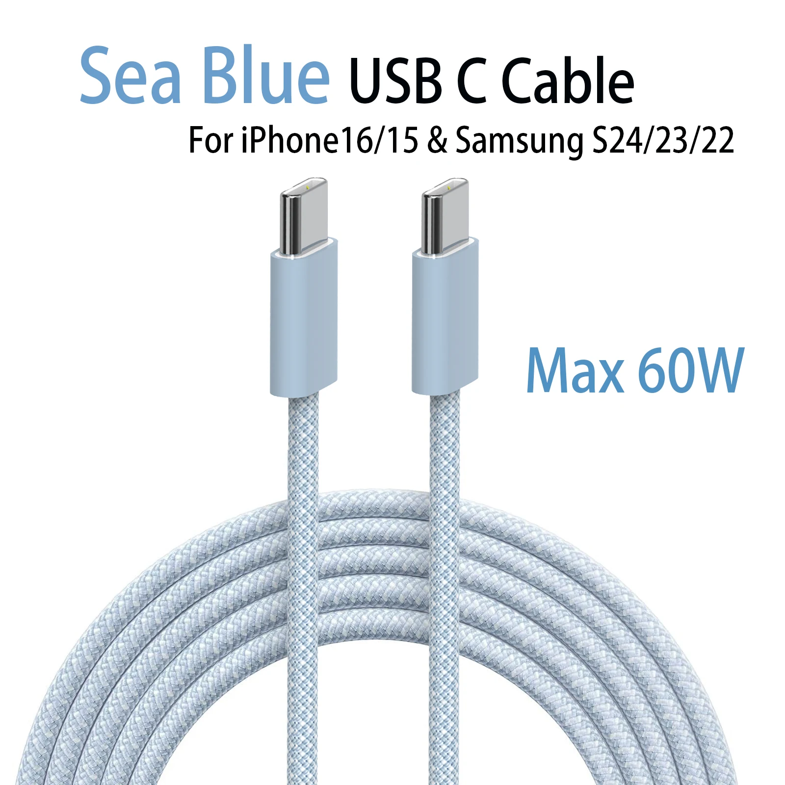 Comprar Cable de carga rápida Sea Blue tipo C de 60 W con diseño trenzado de nailon duradero para iPhone16/15, iPad, Macbook, Samsung S24/23/22, etc.