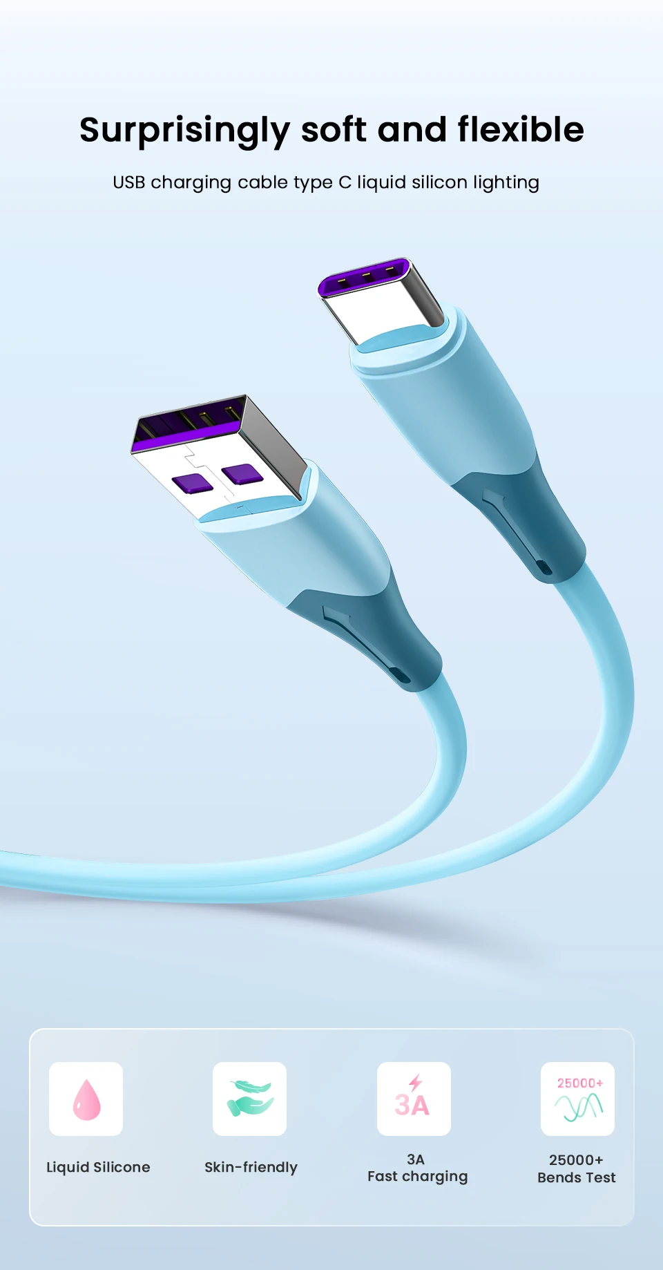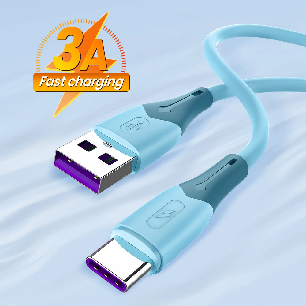 Comprar Cable de carga rápida de silicona líquida 3A para teléfono móvil Samsung, Huawei y Xiaomi, Cable Micro USB tipo C de carga rápida