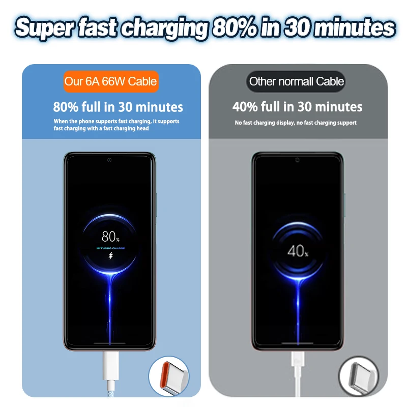 Comprar Cable de carga rápida para teléfono móvil, Cargador USB tipo C de 66W y 6A para Xiaomi, Huawei, Samsung y OPPO