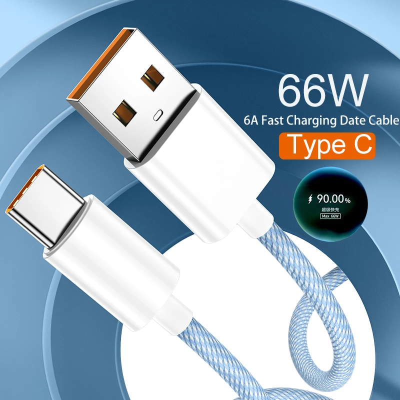 Comprar Cable de carga rápida para teléfono móvil, Cargador USB tipo C de 66W y 6A para Xiaomi, Huawei, Samsung y OPPO
