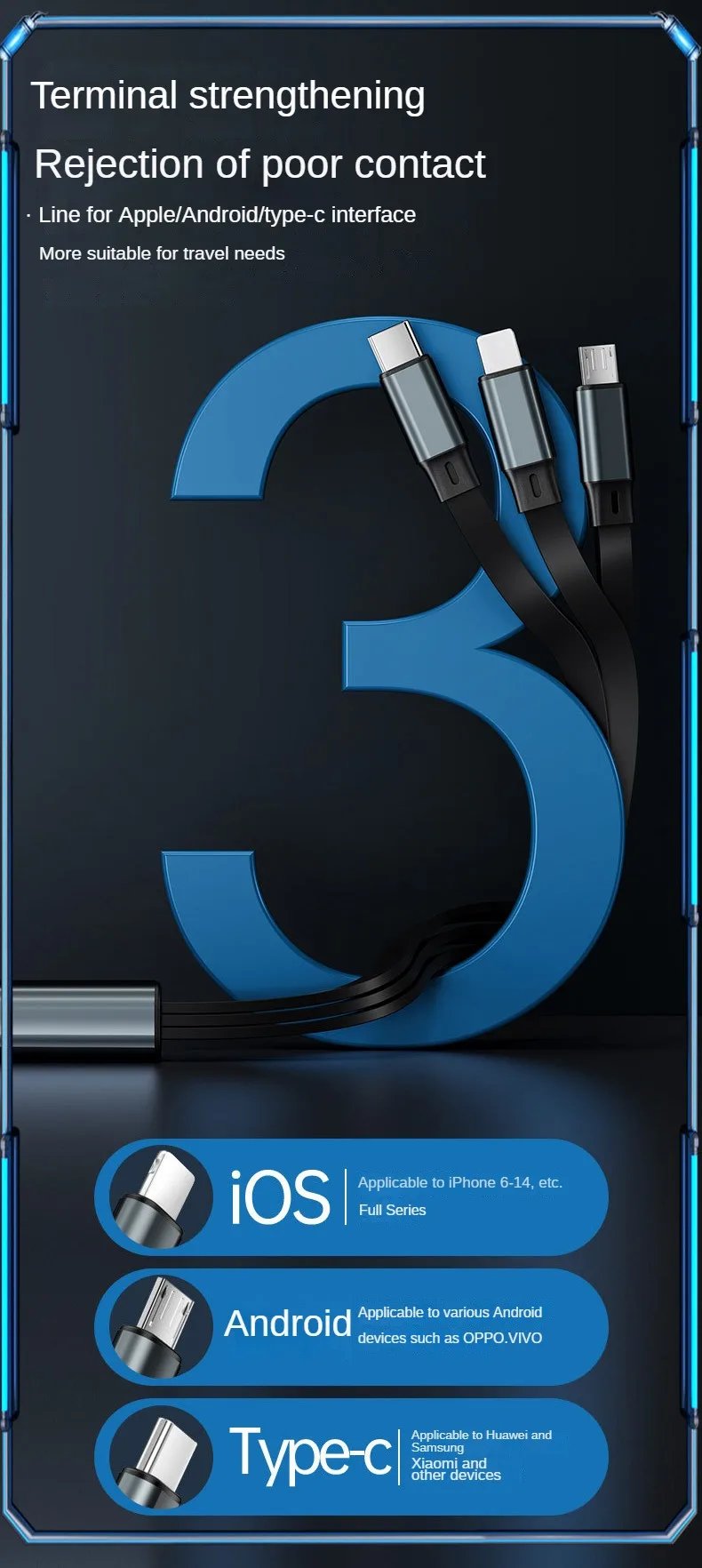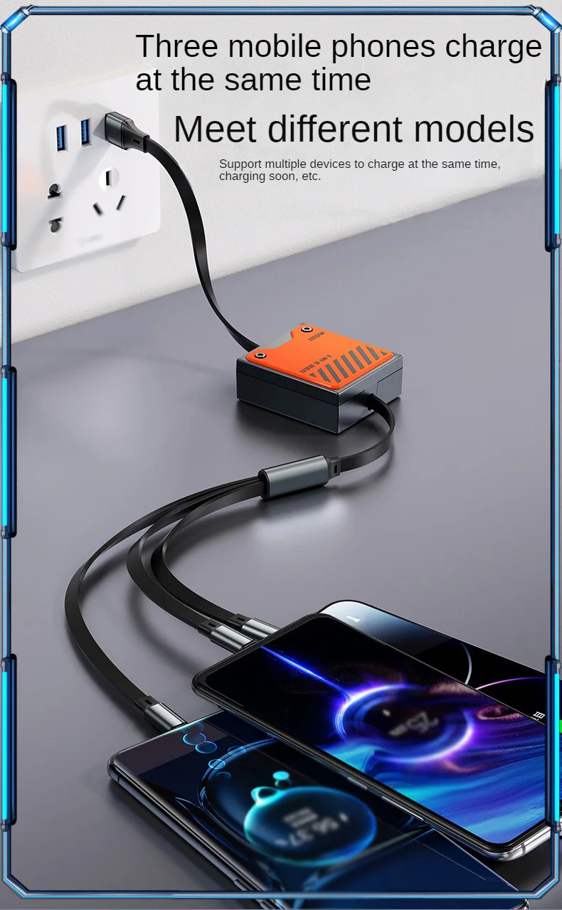 Cable de carga rápida para teléfono USB 3 en 1, multiretrátil, 120w, para iphone 14, 13, 12, 11 pro Max, Huawei, Xiaomi, Samsung - imagen 3