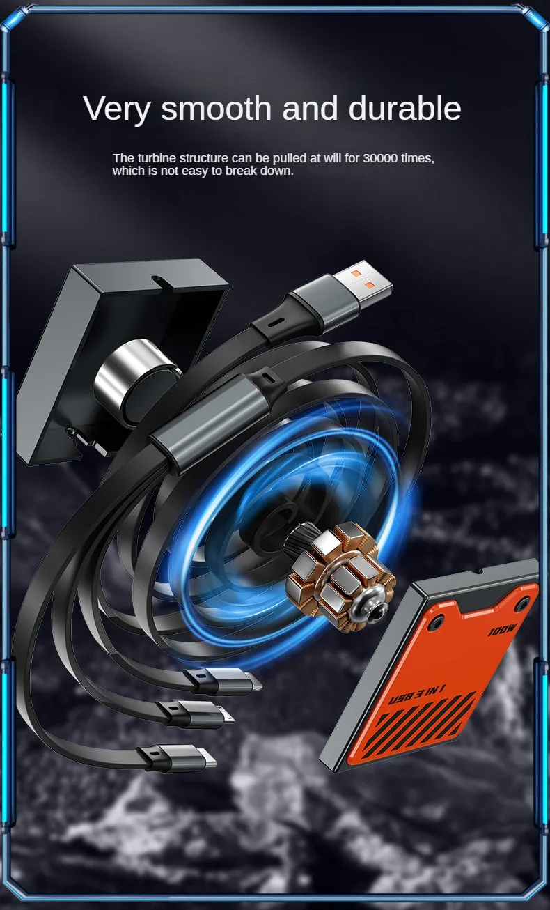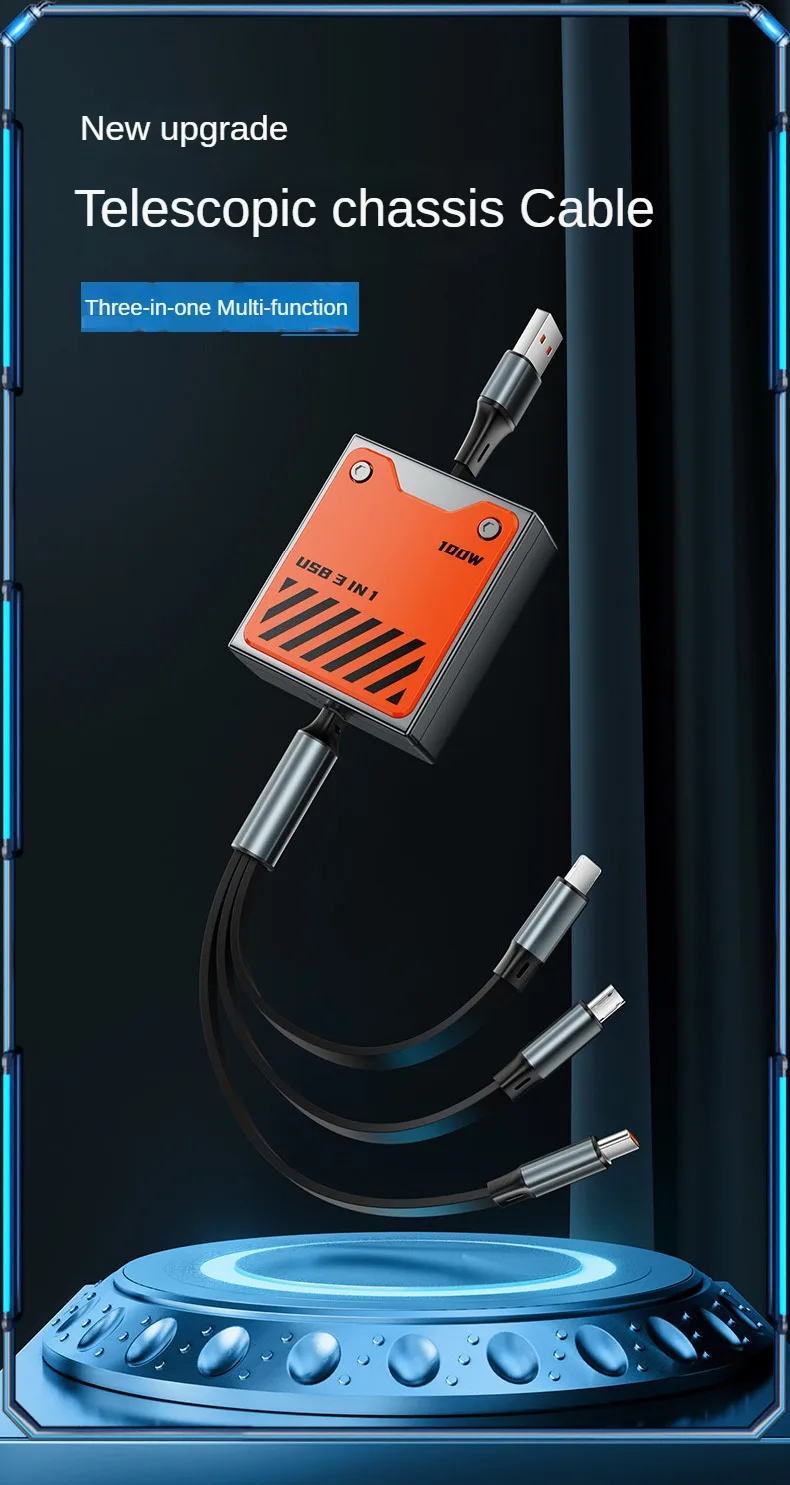 Cable de carga rápida para teléfono USB 3 en 1, multiretrátil, 120w, para iphone 14, 13, 12, 11 pro Max, Huawei, Xiaomi, Samsung
