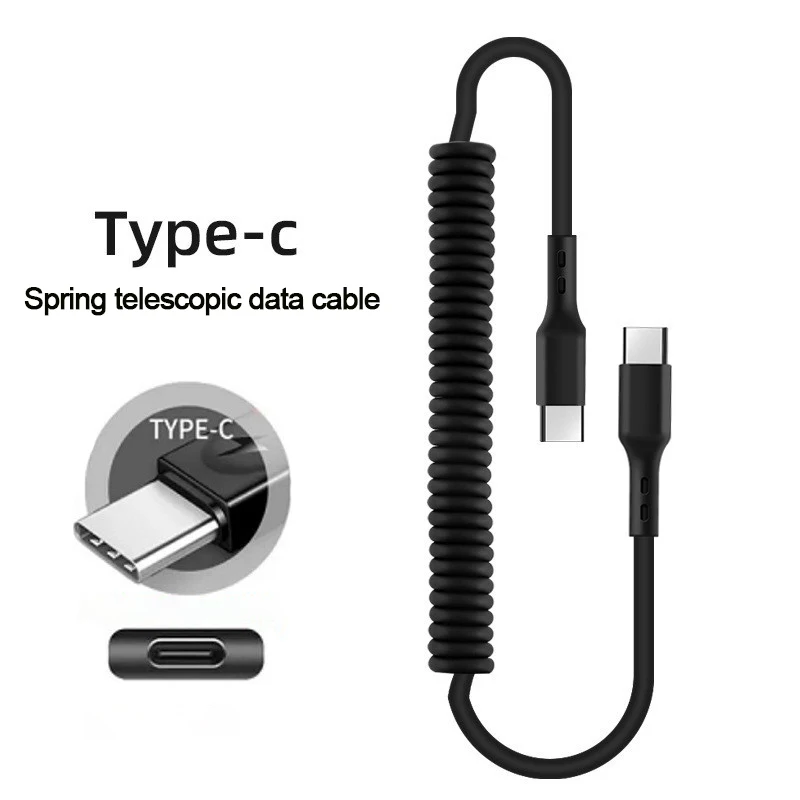 Comprar Cable de carga rápida telescópico de resorte USB tipo C a tipo C de 66W 5A para Xiaomi Redmi Samsung OPPO Huawei Cable de datos USB C para coche