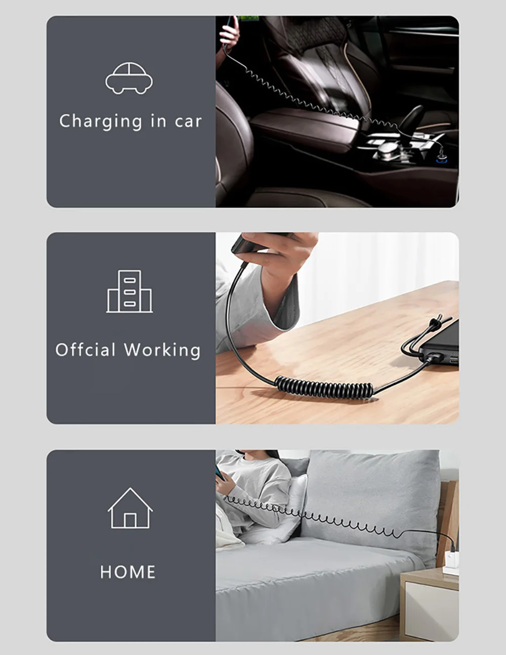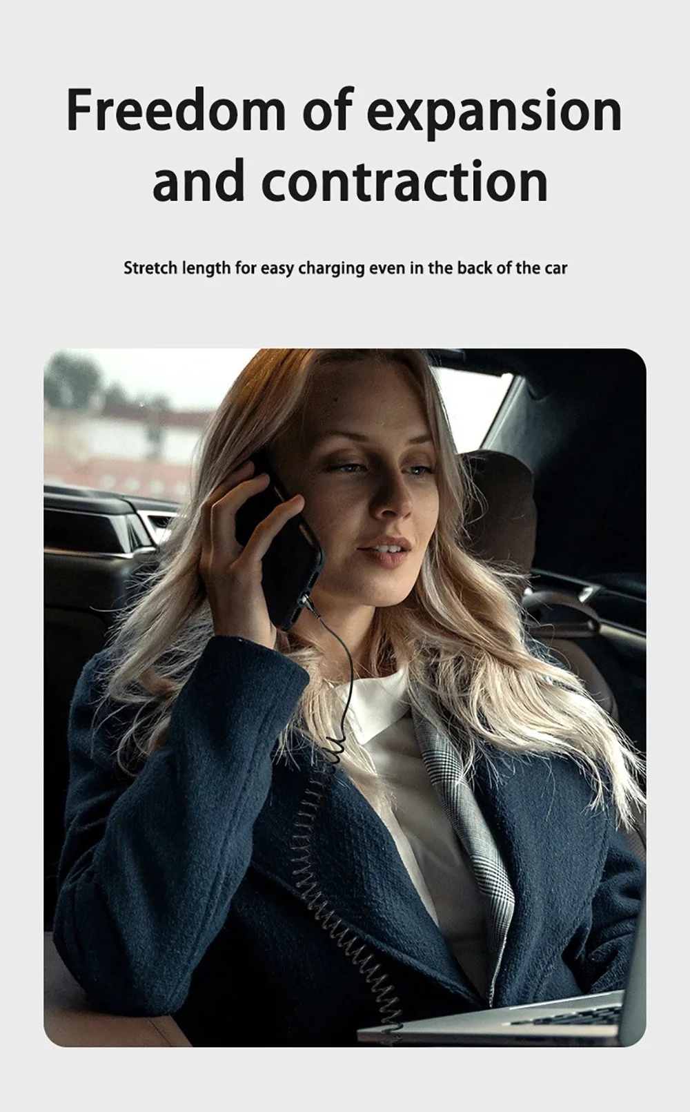 • Diseño retráctil: el diseño del cable retráctil hace que sea fácil de almacenar y transportar, lo que lo hace perfecto para usar sobre la marcha.