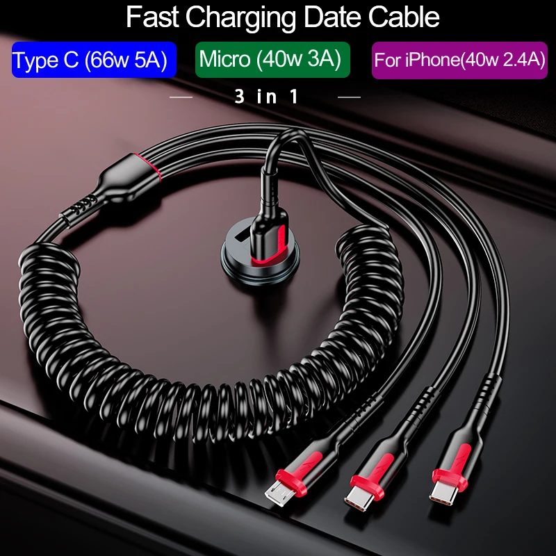 Comprar Cable de carga rápida tipo C de 66W y 5A para coche, 3A Micro USB, Cable USB para Xiaomi Redmi, Samsung, Realme, accesorios de teléfono para iPhone