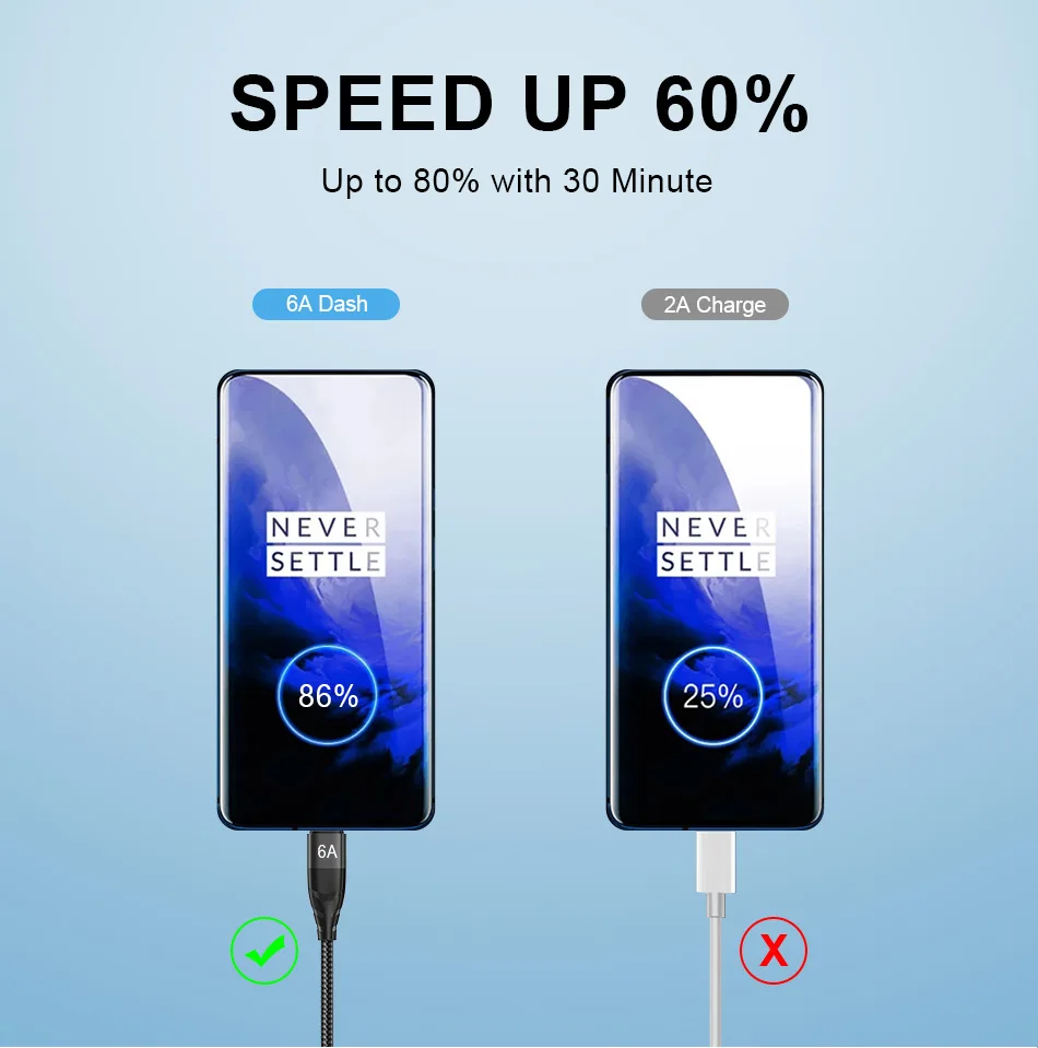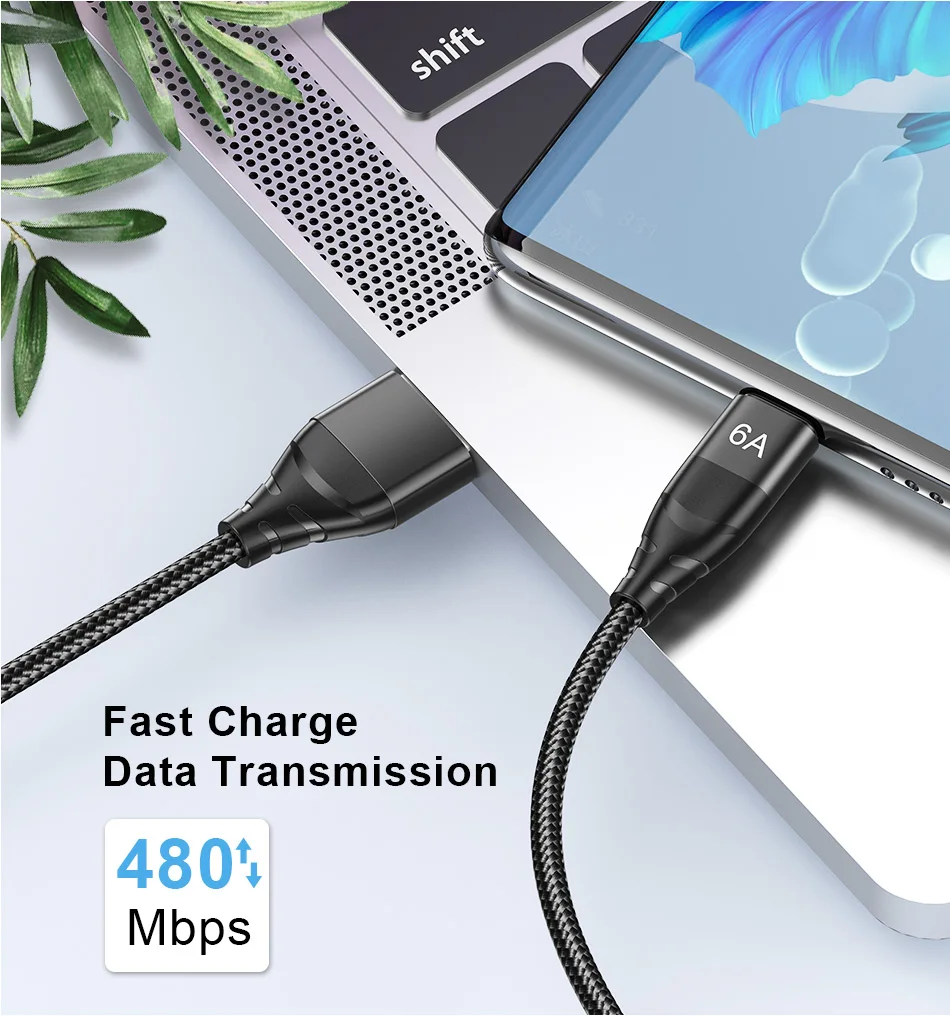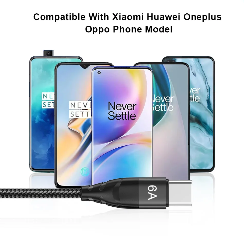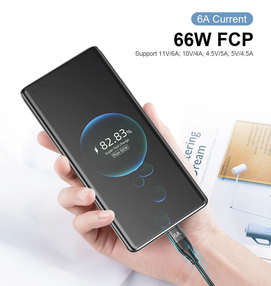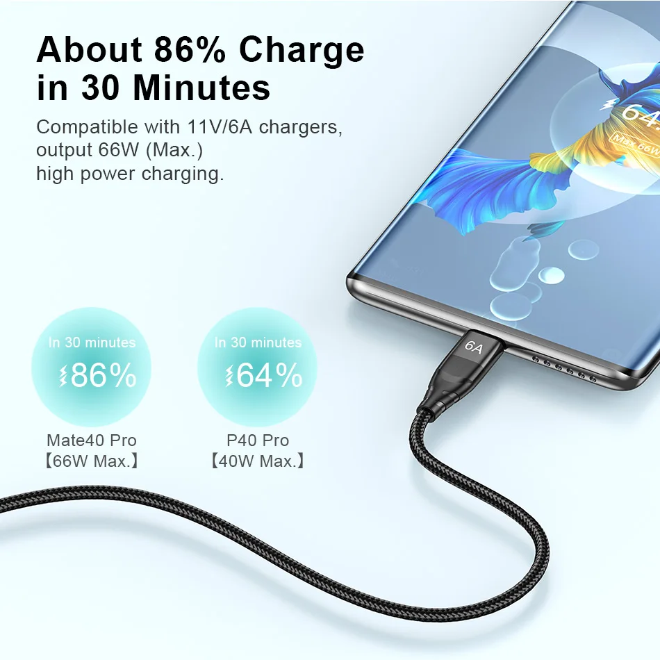 Comprar Cable de carga rápida tipo C 6A, 66W, Mate40 para Huawei, P50, P40 Pro, Honor 1/2M, Xiaomi Redmi Note 7, 8 Pro