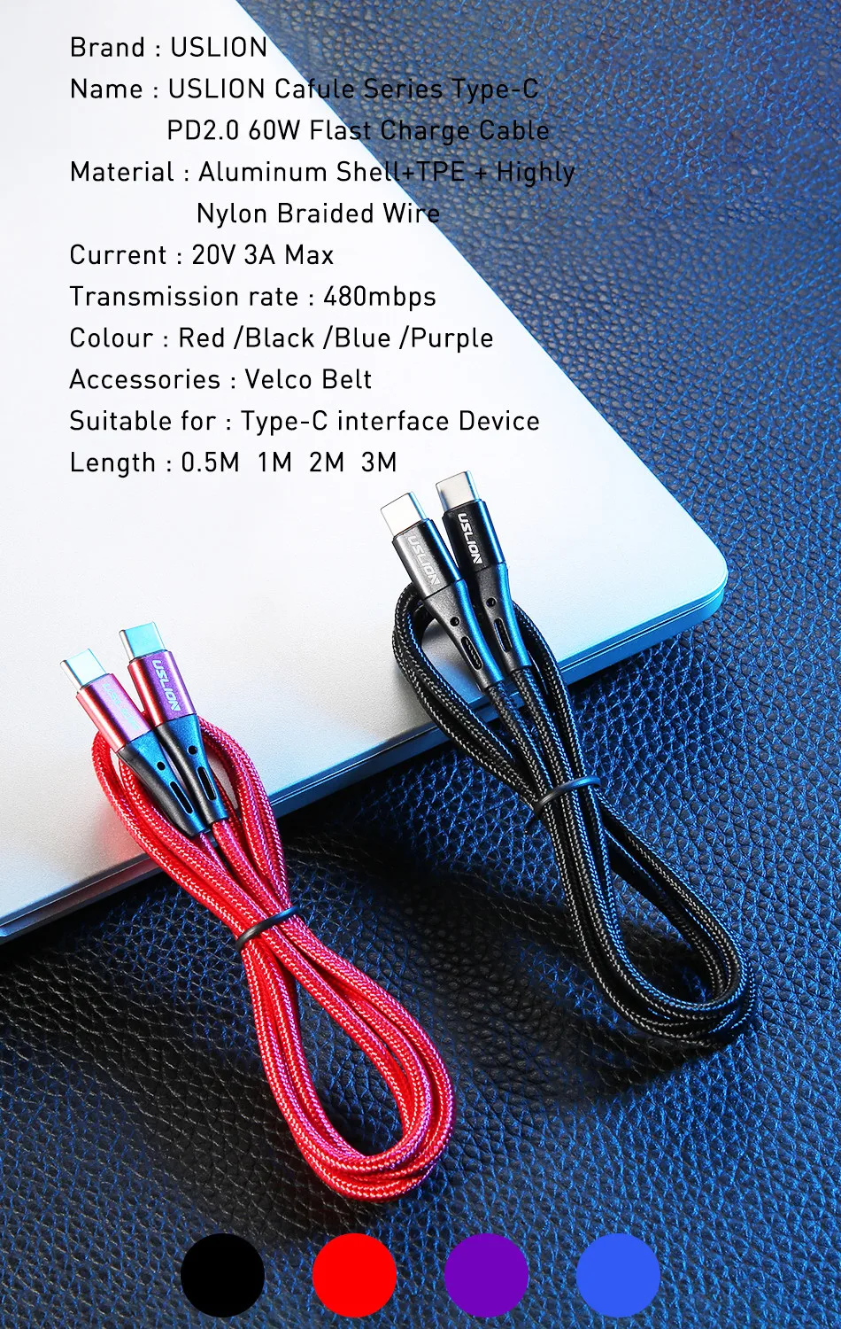 Comprar Cable de carga rápida tipo C a tipo C, 60W, PD, QC 3,0, Cable de datos USB C para teléfono móvil, para Xiaomi 12 Pro, Mi 11, Samsung S22, S21