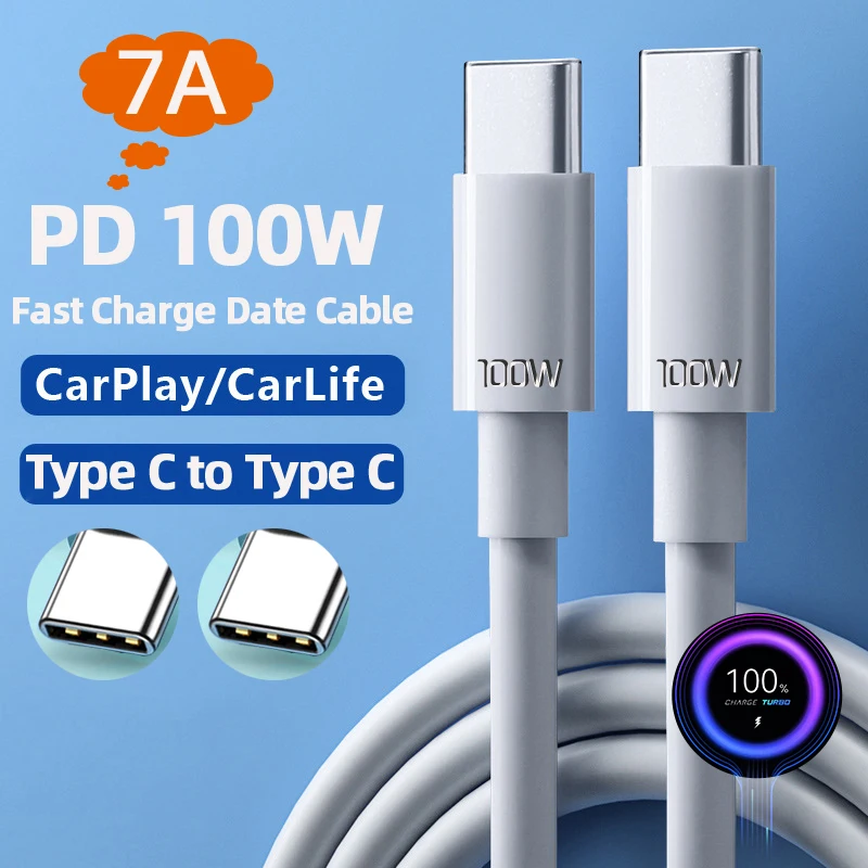 Comprar Cable de carga rápida tipo C a tipo C para Samsung, Xiaomi, Redmi, Huawei, MacBook Pro, iPad Pro, Cable de datos cargador Carplay, 7A, PD, 100W