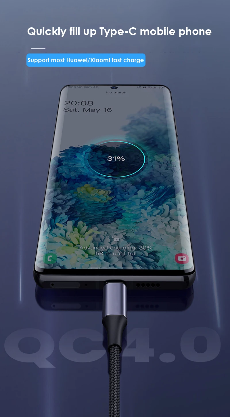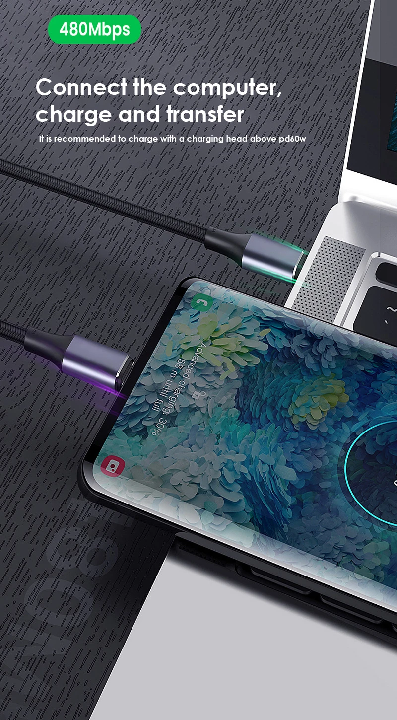 [Especificación del cable de cobre]: cobre estañado de 6 núcleos; 65 0,1 * 2C para carga y 16 0,08 * 4C para datos (PD 100W Carga Rápida)