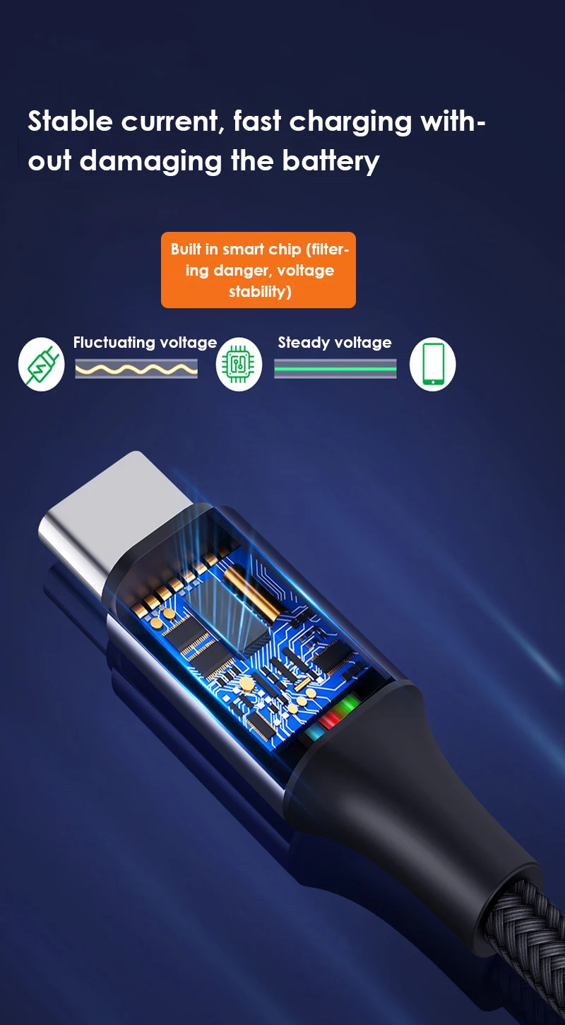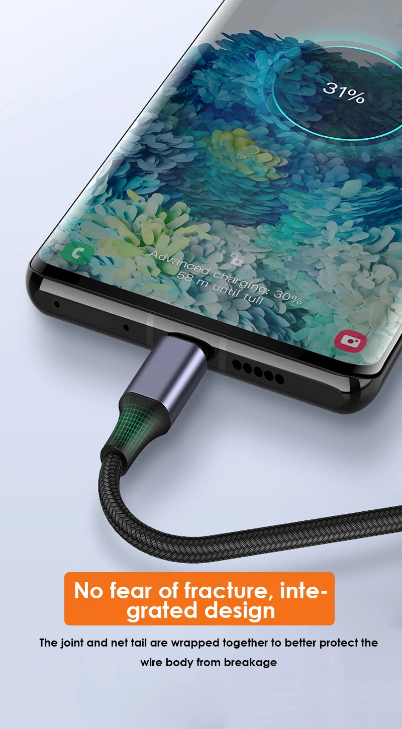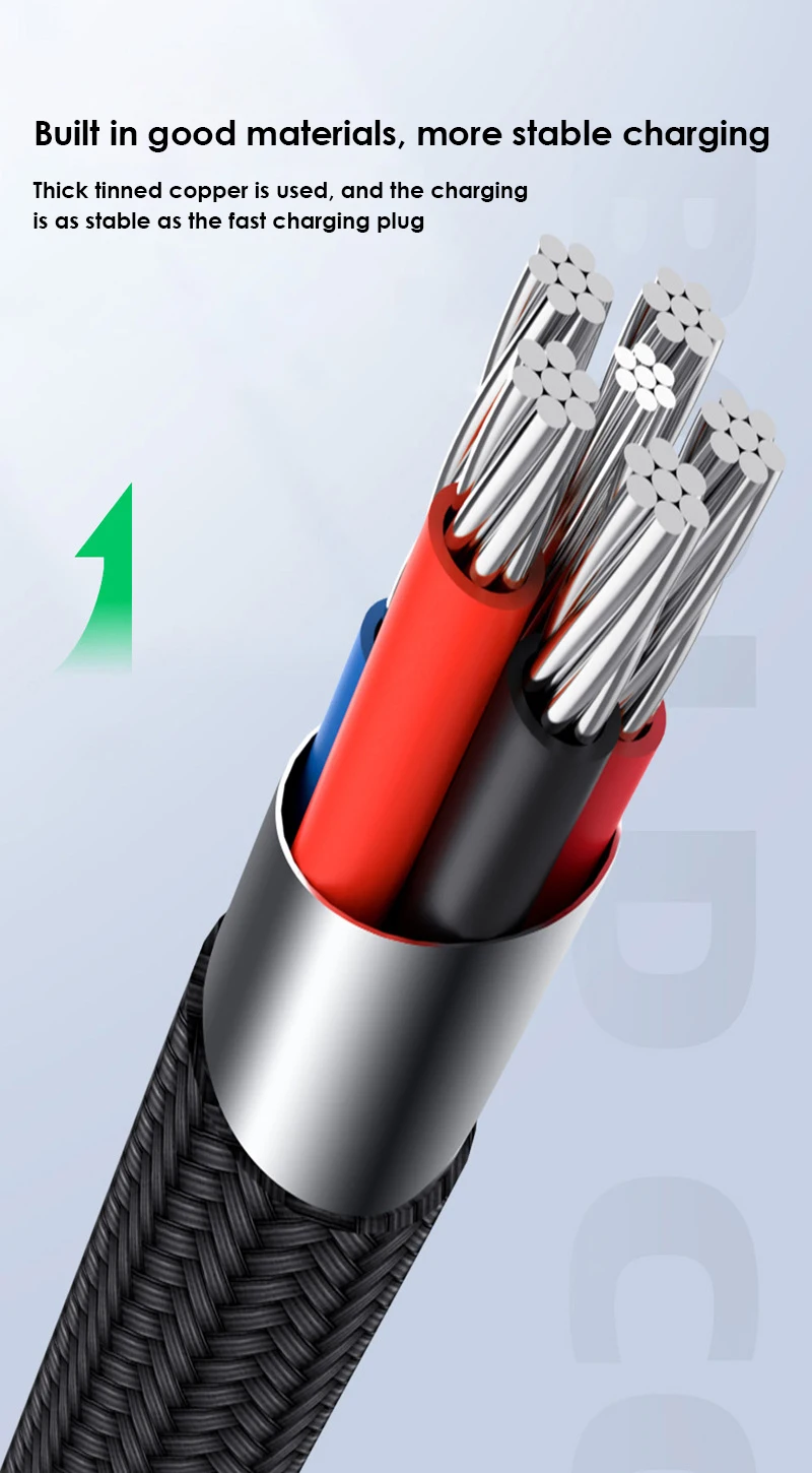 6. Actualice el grueso núcleo de cobre estañado, cargando más rápido y la transmisión de datos más estable. Enchufe de aleación de aluminio mejorado, carcasa de metal de aleación de aluminio, fuerte y duradero, cuerpo de alambre trenzado de nailon de alta densidad, capa protectora de TPE bien envuelta, fuerte y flexible, duradero, extendiendo efectivamente la vida útil.