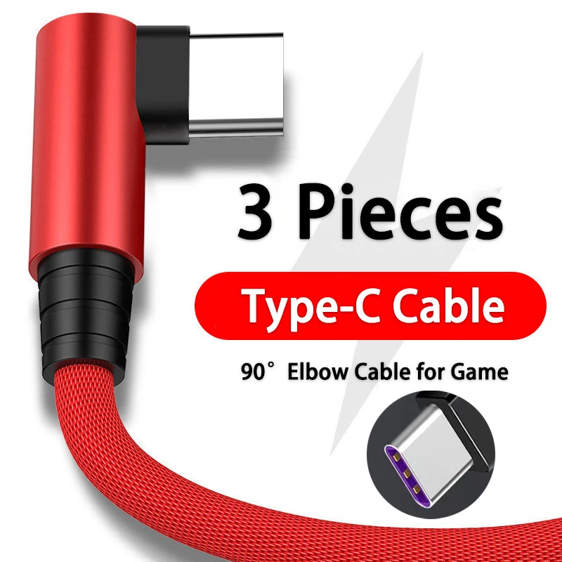 Comprar Cable de carga rápida tipo C, Cable de codo de 90 grados para juego para Xiaomi Redmi, Huawei, Honor, cargador de teléfono USB C, 3 piezas