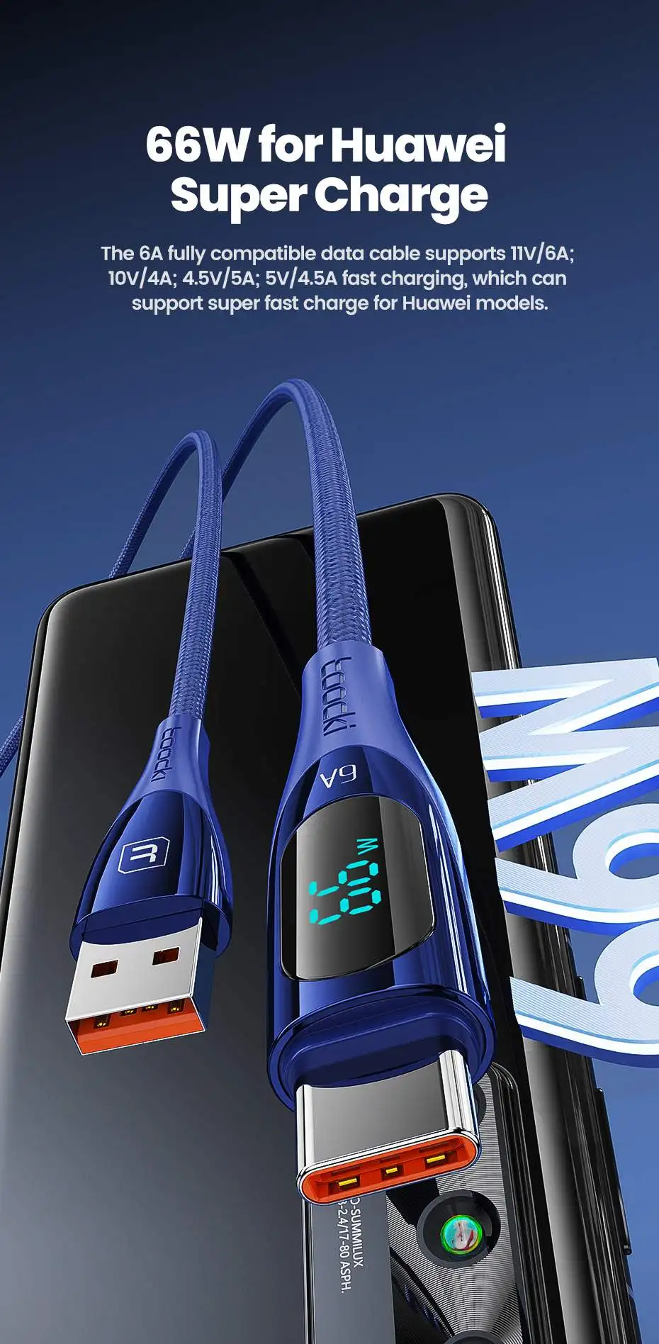 Comprar Cable de carga rápida TQ-X34 6A 66W a tipo C, Cable de transmisión de datos, núcleo de cobre estañado de 1M/2M de largo para Mate60 para Galaxy S23