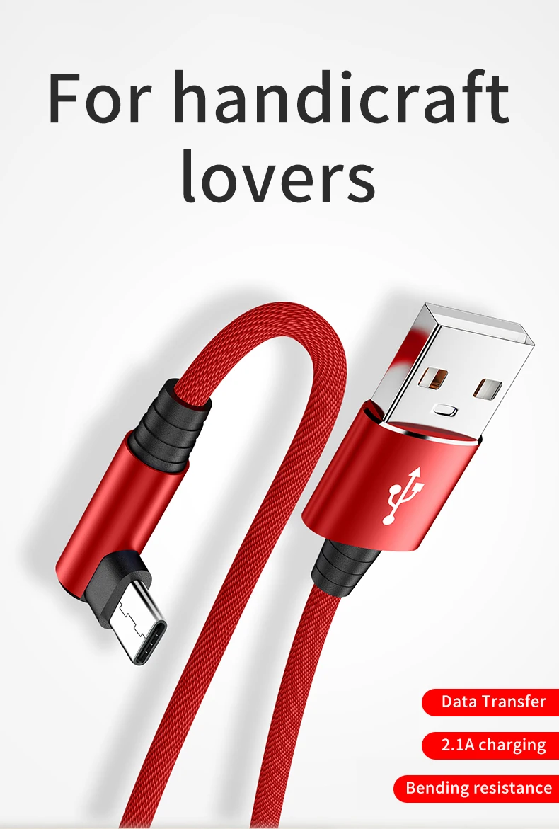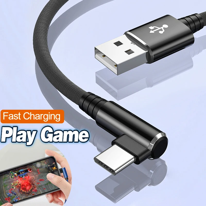 Comprar Cable de carga rápida USB a tipo C de tejido de codo de 90 grados para Xiaomi Redmi Samsung Huawei Realme OPPO Play Game Cable USB C