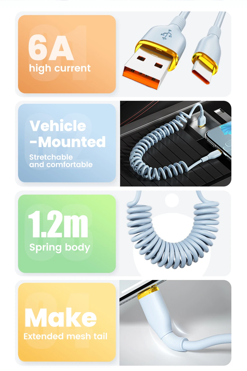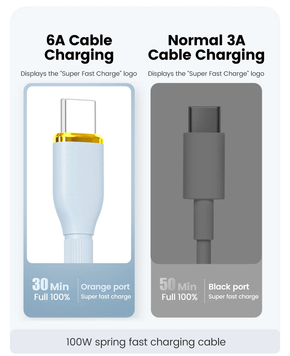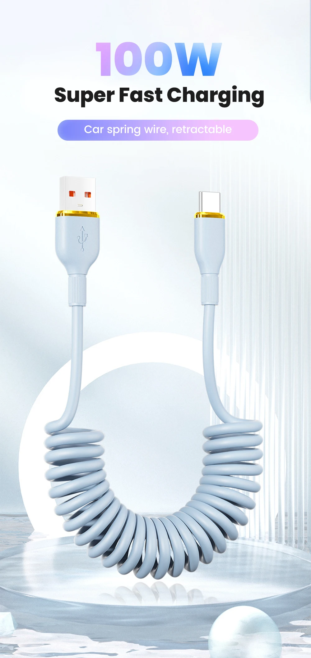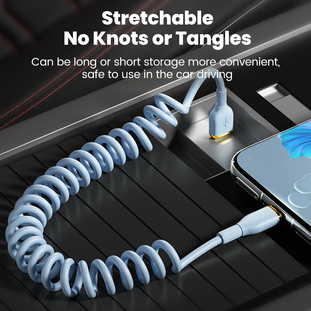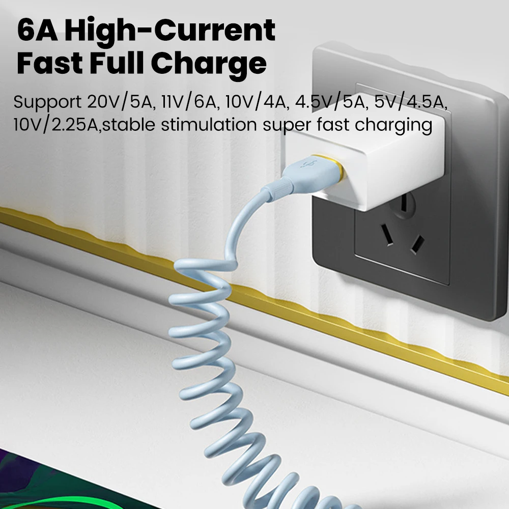 Comprar Cable de carga rápida USB C de 100W, Cable de datos tipo C con resorte para coche para Huawei, Xiaomi, Redmi, POCO, Cable tipo C a tipo C para iPhone 15 16