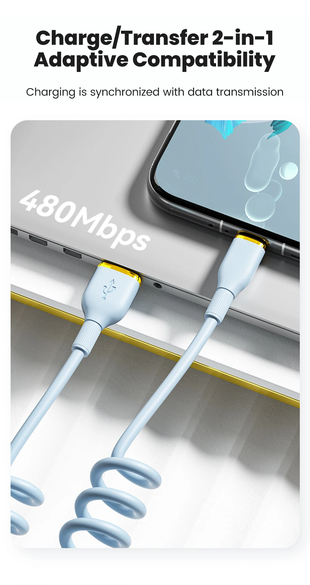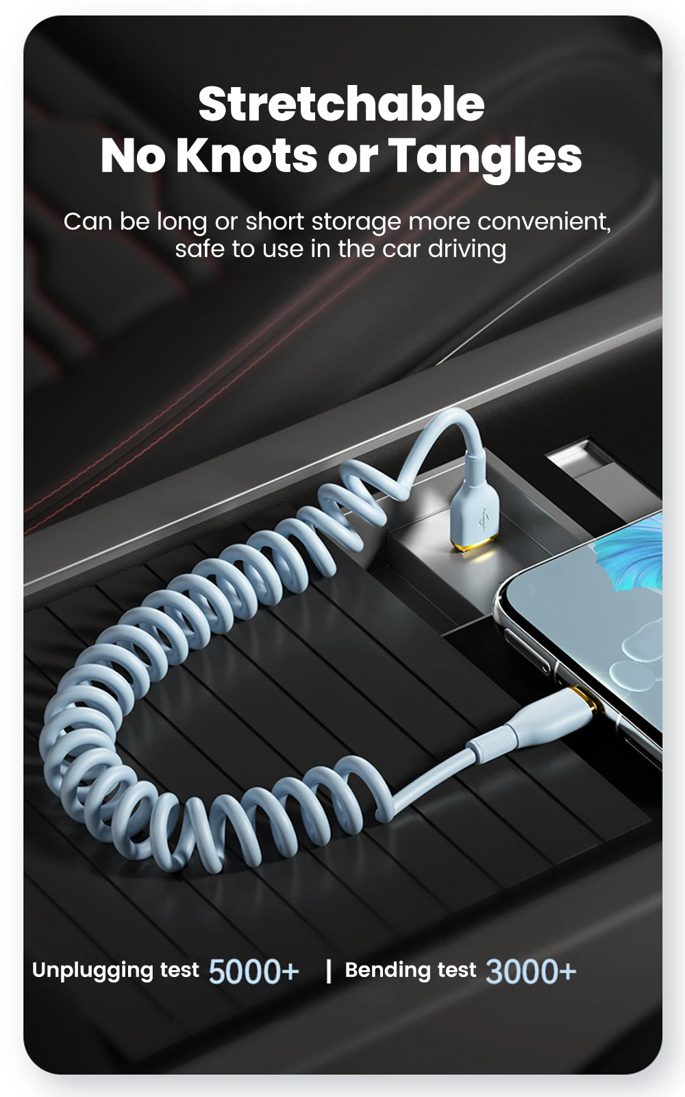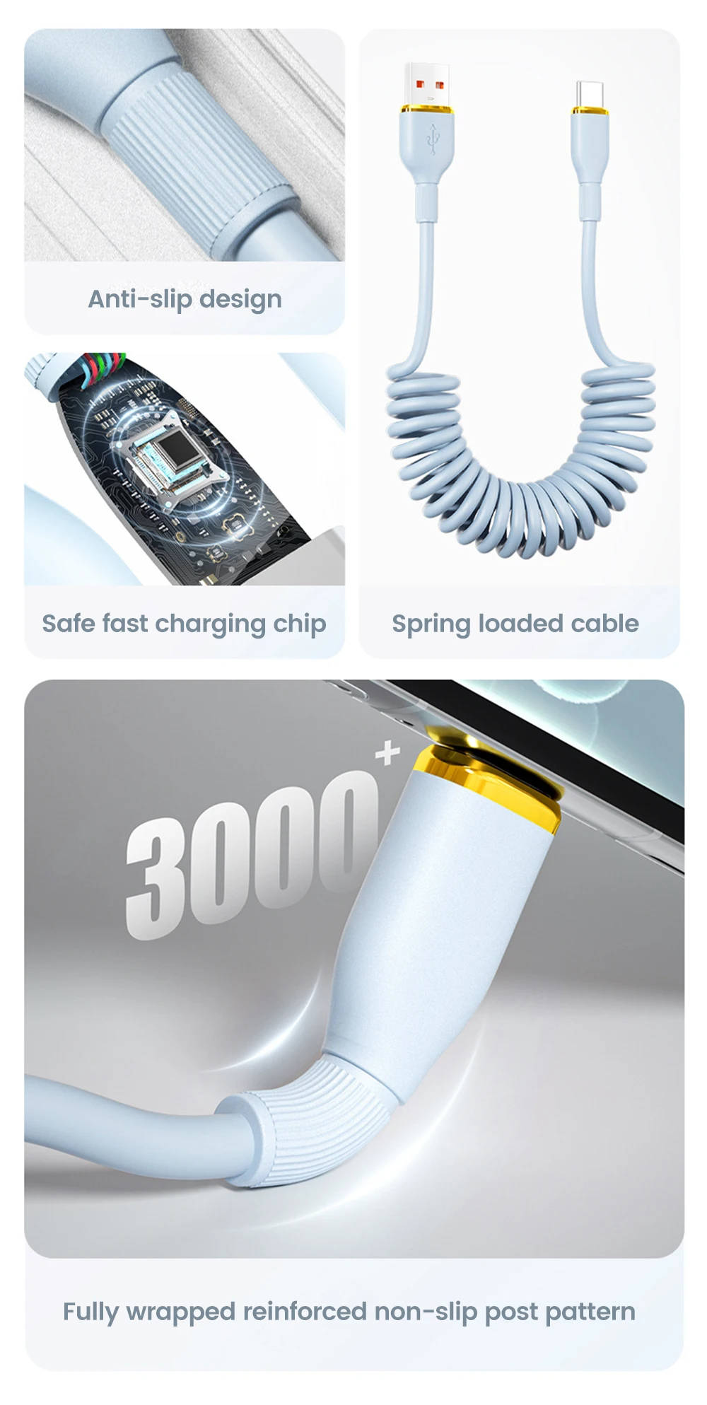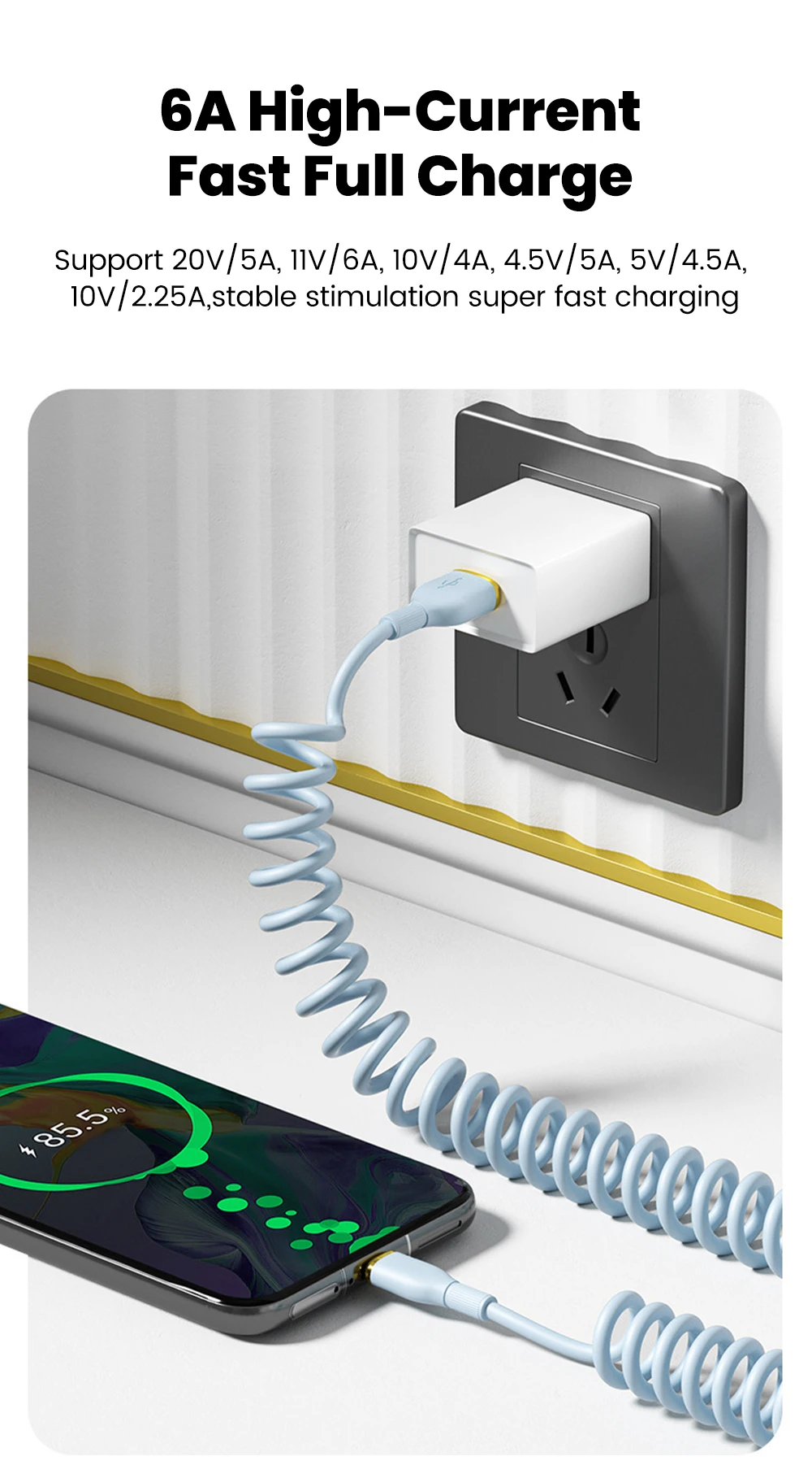 Comprar Cable de carga rápida USB C de 100W, Cable de datos tipo C con resorte para coche para Huawei, Xiaomi, Redmi, POCO, Cable tipo C a tipo C para iPhone 15 16
