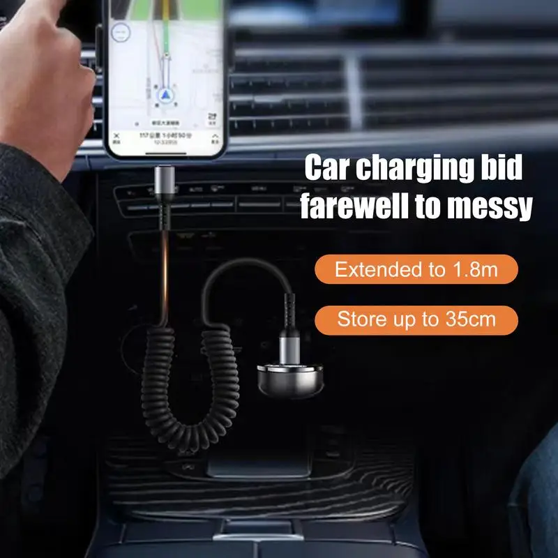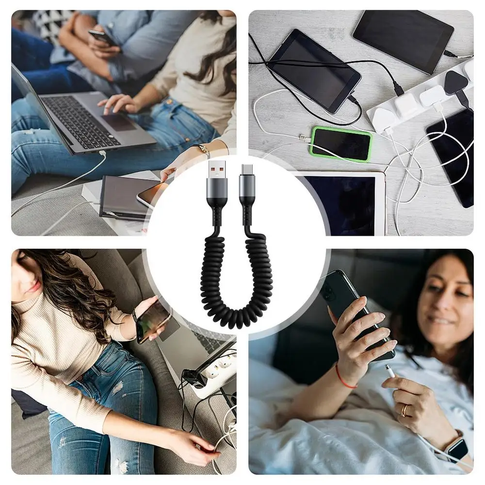 2. Longitud flexible: el diseño de resorte de este cable cargador USB C permite estirarlo fácilmente de 35 cm a 180 cm, ofreciendo una comodidad ideal para ajustar su longitud.Su característica telescópica lo mantiene libre de nudos y aumenta su durabilidad.