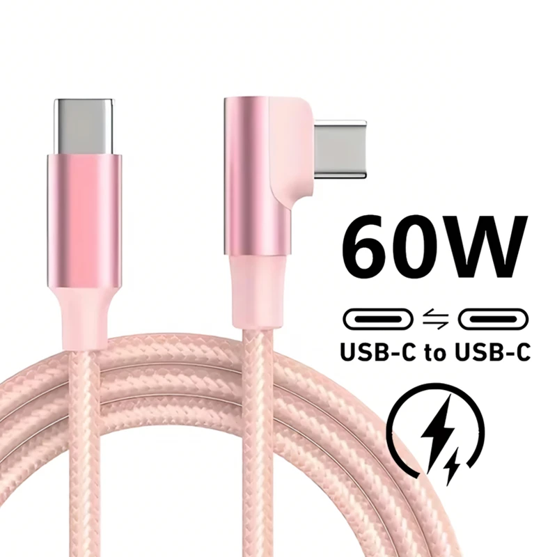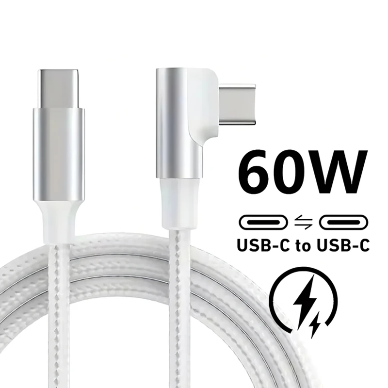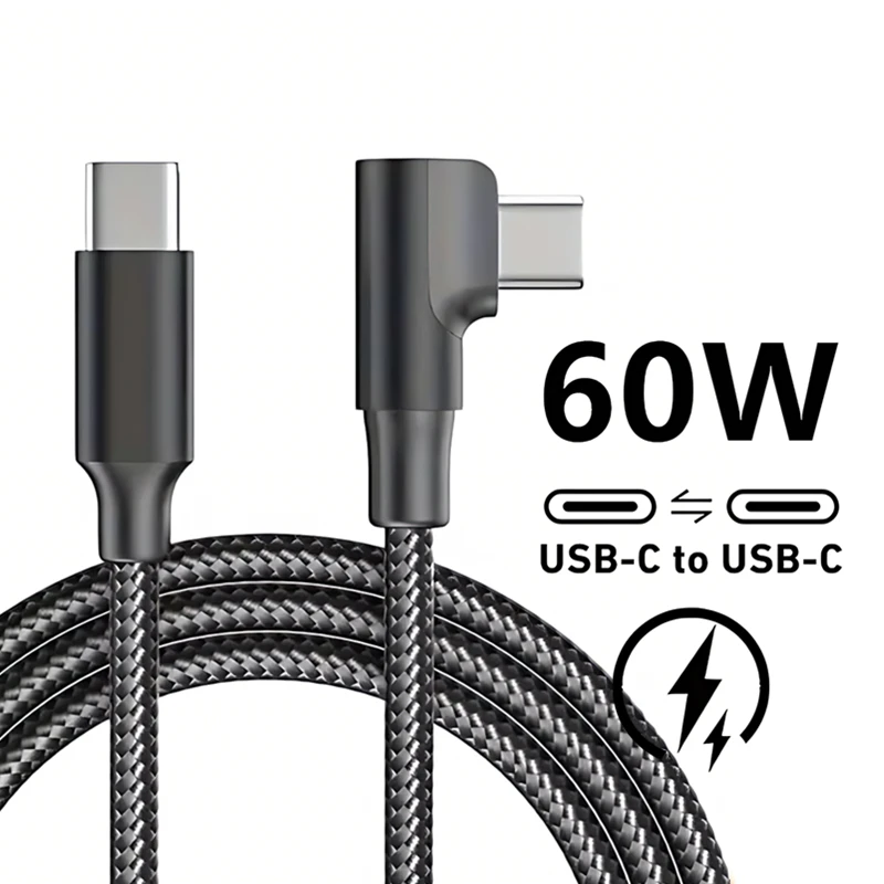 Cable de carga rápida USB-C a USB-C con codo de 90 grados para iPhone 16 15 Pro Max 16 15 Plus Samsung S25 S24 A73 A54 Xiaomi 15 14T Redmi Note 14 13 Pro POCO X7 X5 Pro OnePlus 13 11 10 Pro Nord 5 4 CE 3 Lite Nylon trenzado tipo C a cables de carga rápida tipo C 1m 2m