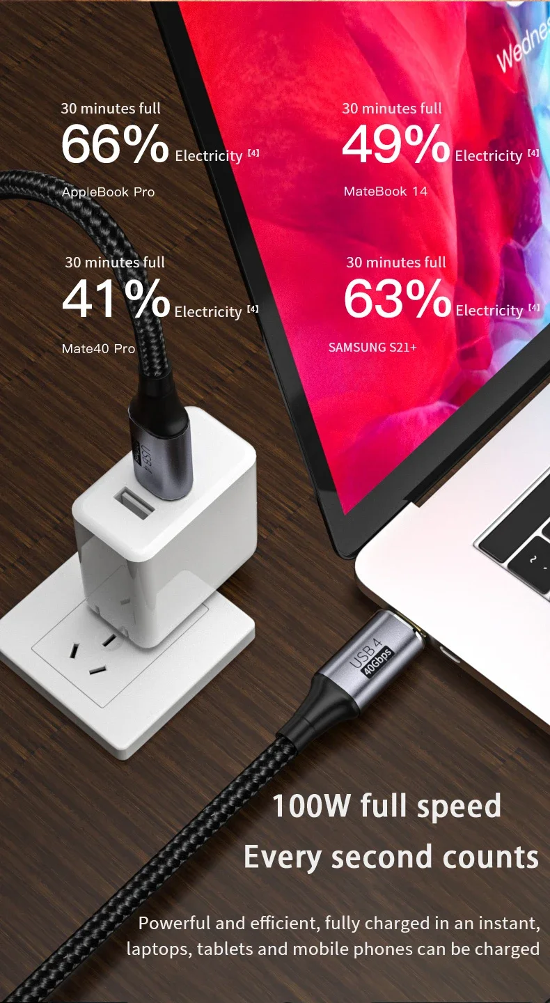 -Carga rápida PD de 100W Utilice el cargador original o compre un cargador con más de 100W de potencia, de lo contrario el cable no podrá reproducir el mejor rendimiento