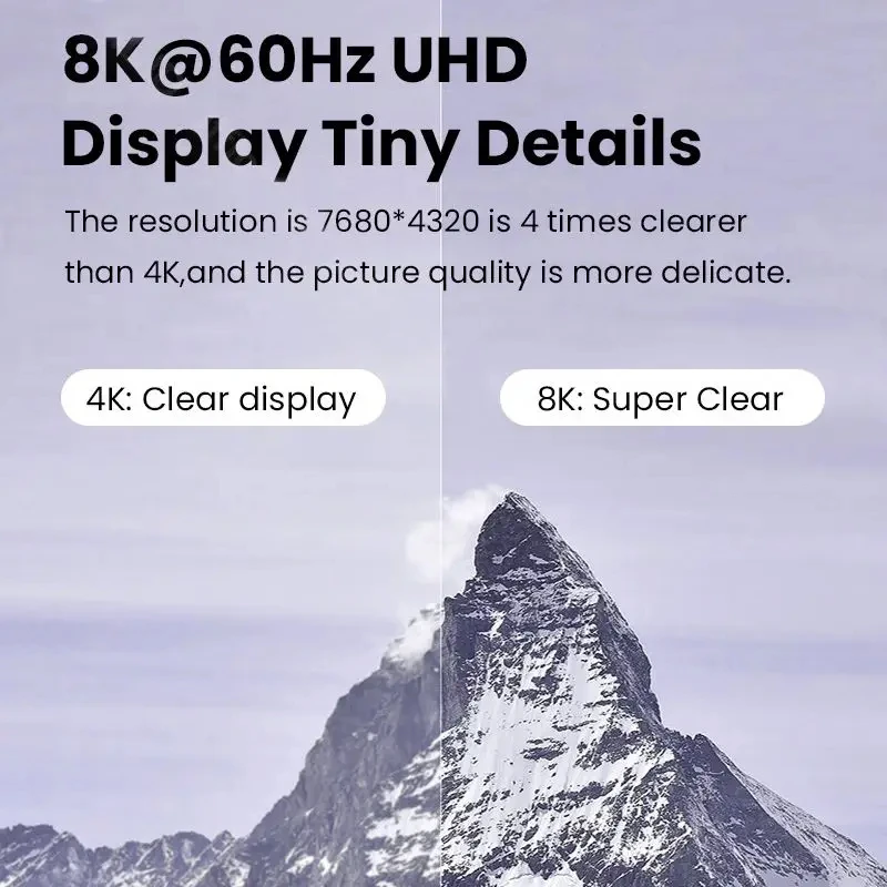 Hasta 7680*4320P @ 60Hz de resolución, puede conectar su teléfono móvil/tableta/portátil al monitor sin WiFi, hacer zoom en la pantalla, jugar, ver películas, trabajar, más conveniente.