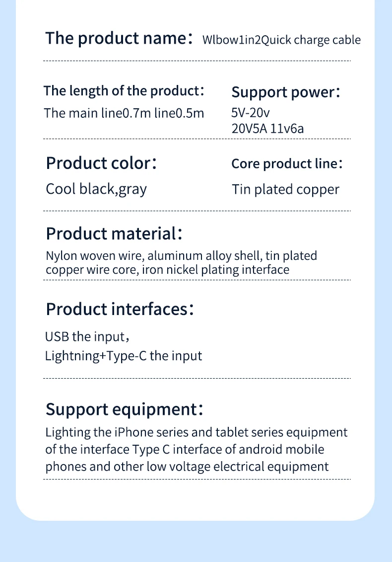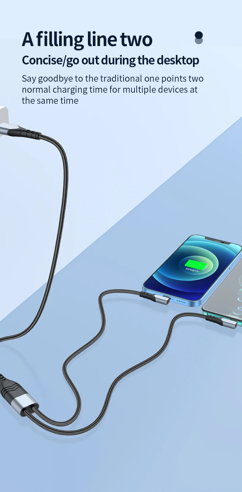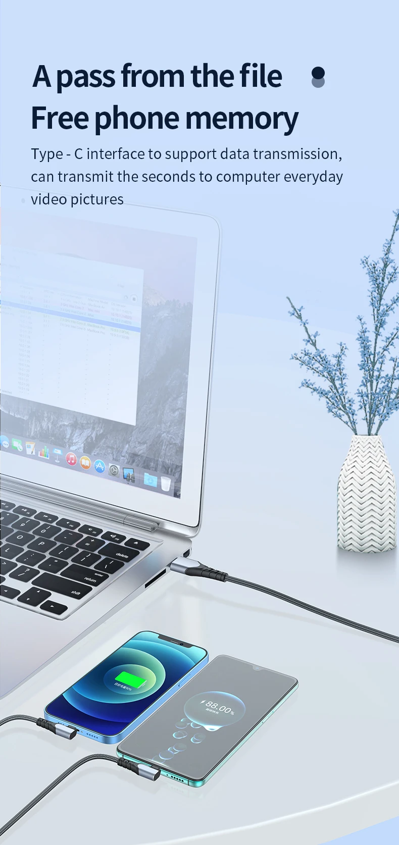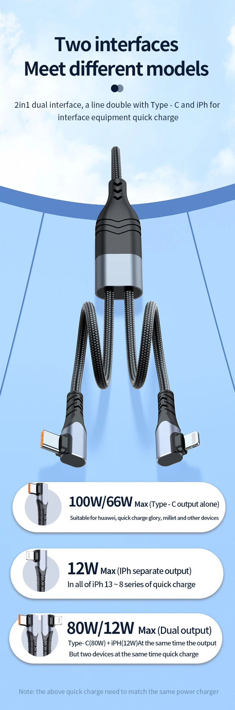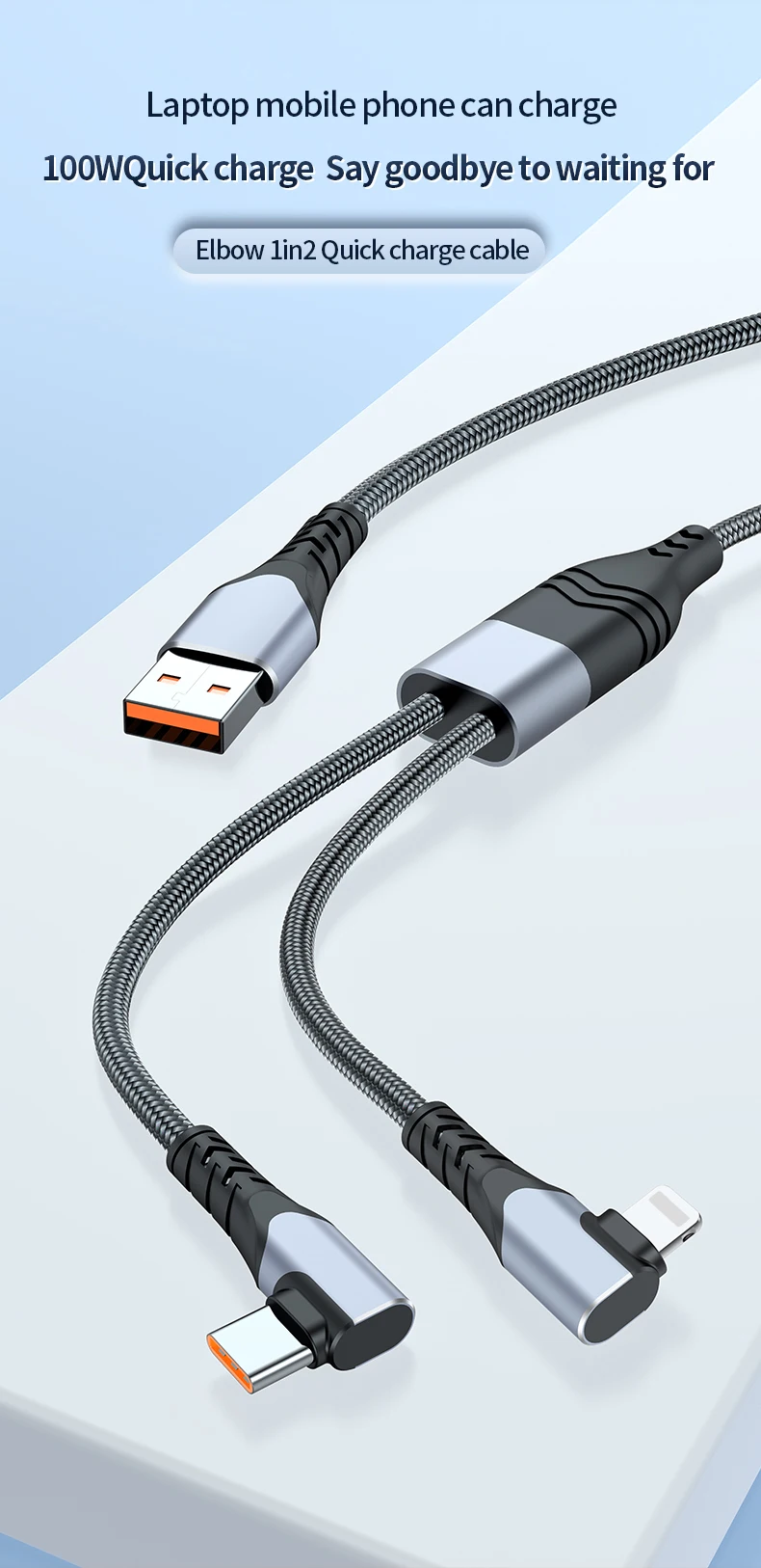 Comprar Cable de carga rápida USB tipo C, 2 en 1, 6A, 100W, para Huawei/Honor, iPhone 14, 13, 12 Pro Max, Xiaomi