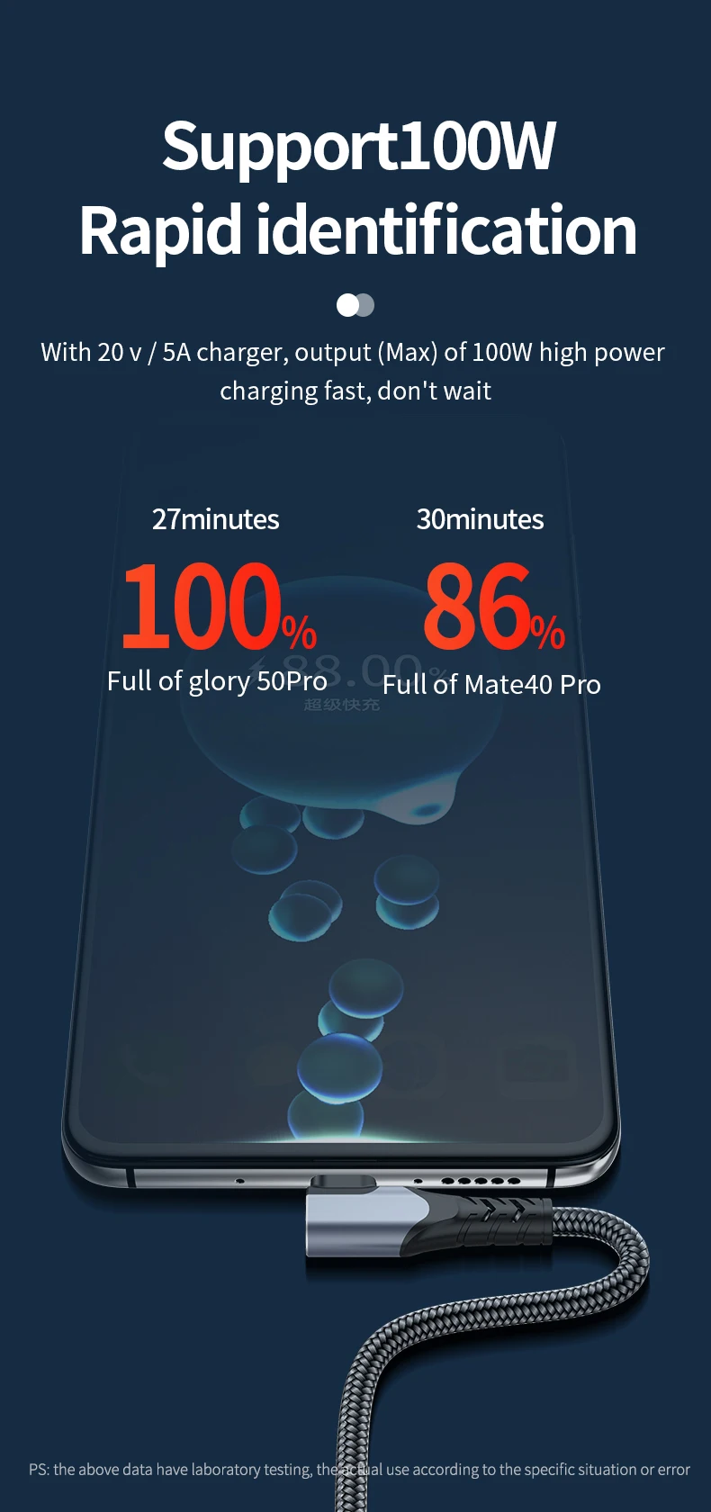 Nota: Solo la serie Huawei P50/Mate 40RS/Pro +/Pro puede emitir66W(11V/6A)Max, solo Honor 50 Pro puede lograr100W(20V/5A)Salida, y debe estar equipado conCargador rápido Huawei/Honor original 66W/100W