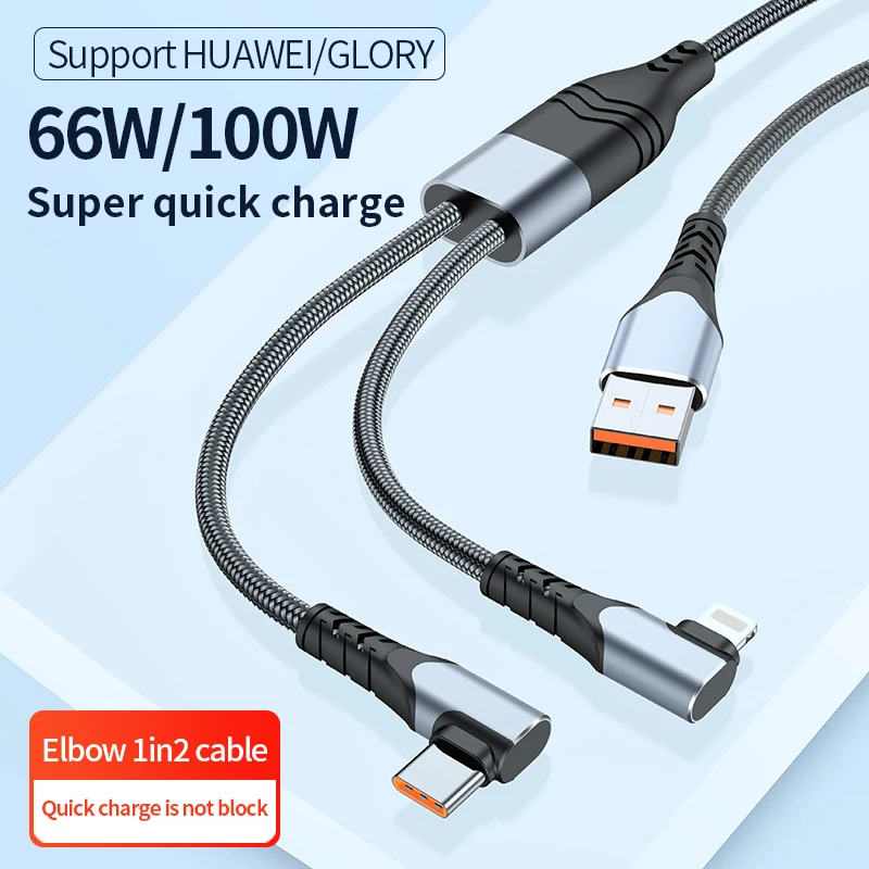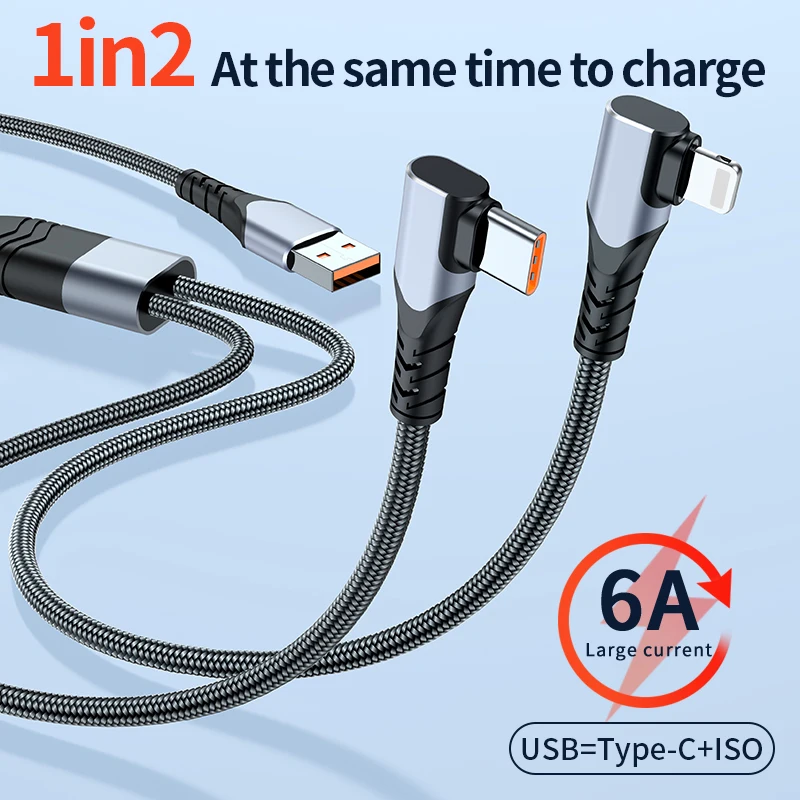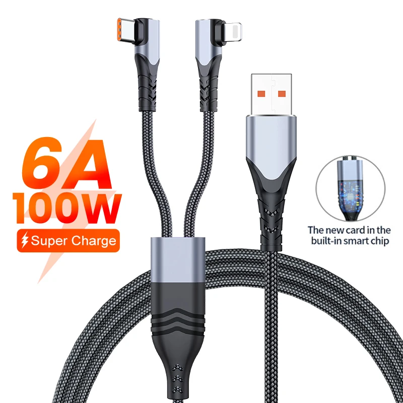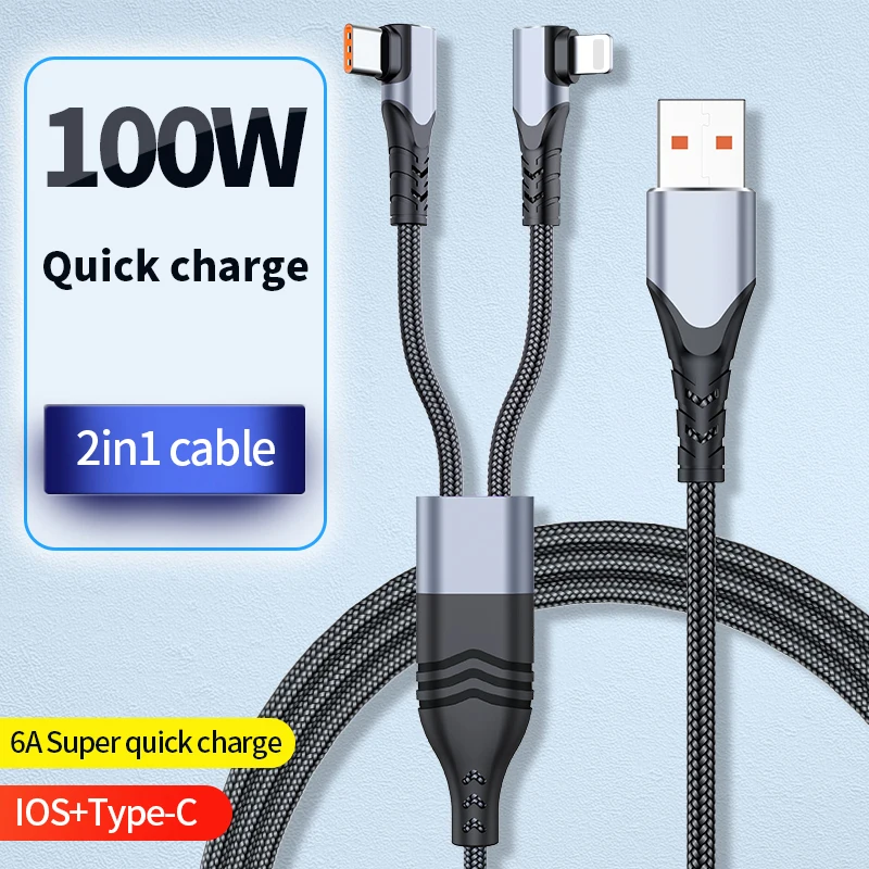 Comprar Cable de carga rápida USB tipo C, 2 en 1, 6A, 100W, para Huawei/Honor, iPhone 14, 13, 12 Pro Max, Xiaomi