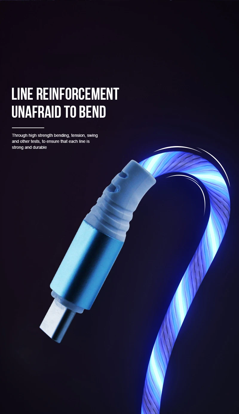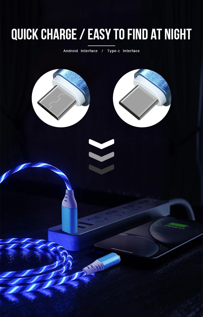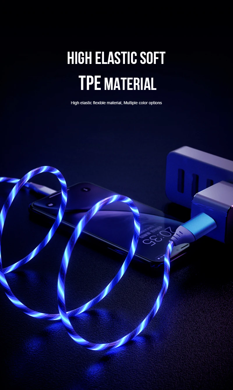 Experimente una carga rápida con nuestro cable USB tipo C de luz fluida de 3 A, que garantiza que sus dispositivos se enciendan rápidamente.