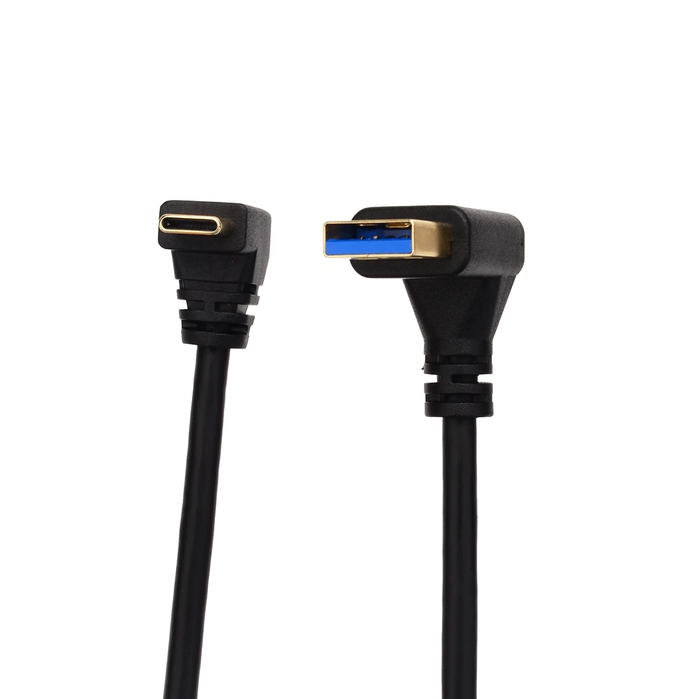 Cable de datos tipo C de doble codo USB3.0 a transmisión de carga de teléfono móvil USB3.0, arriba, abajo, cable corto recto de curva izquierda y derecha