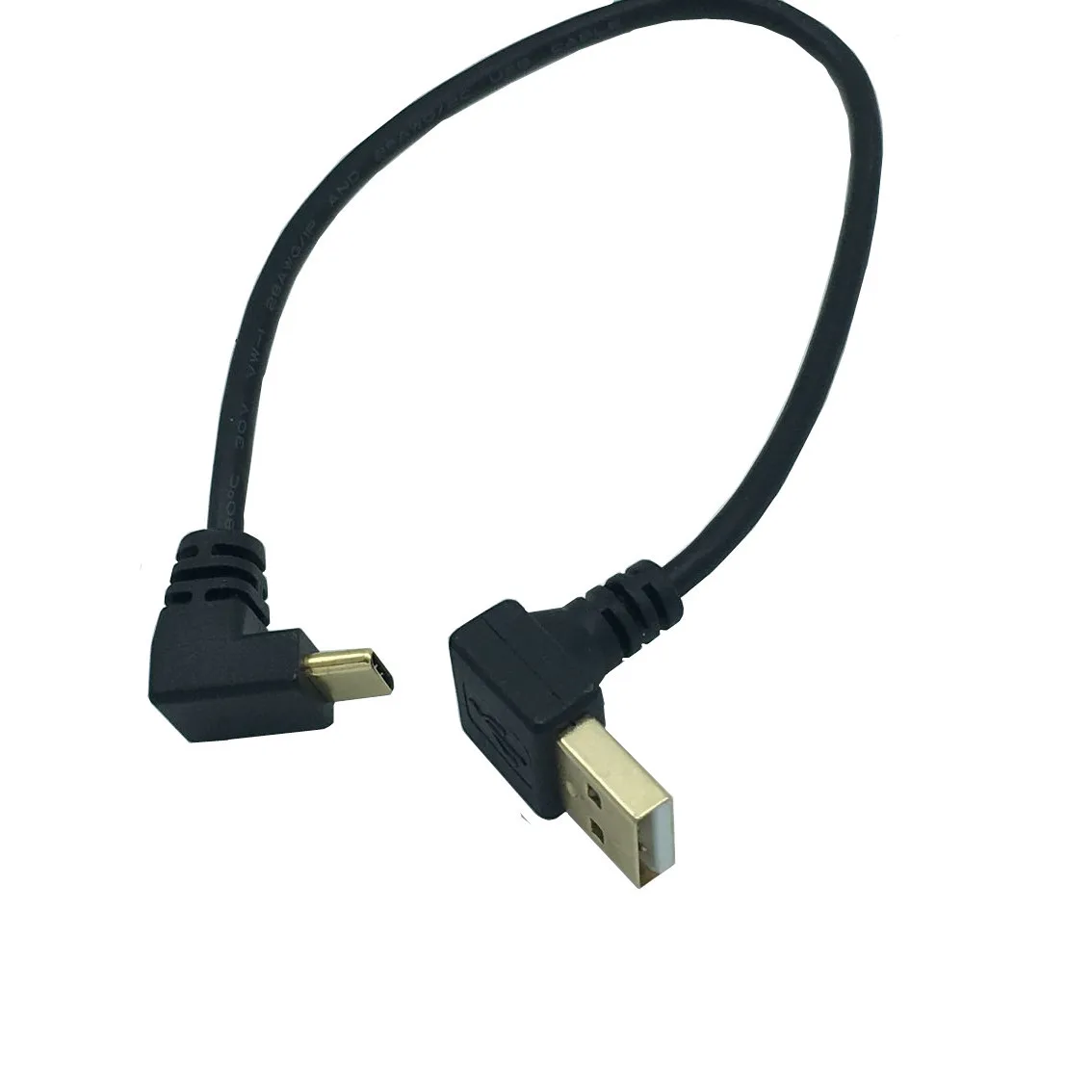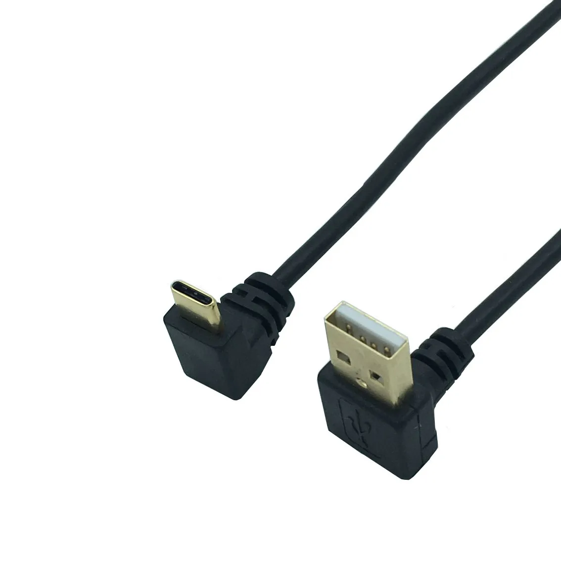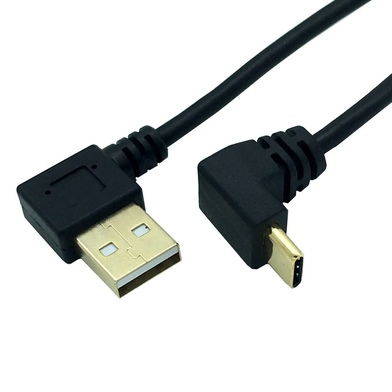 Comprar Cable de carga de sincronización de datos USB 2,0 A macho, convertidor macho de 90 grados arriba abajo, codo de ángulo izquierdo y derecho A USB 3,1 tipo C, 25cm