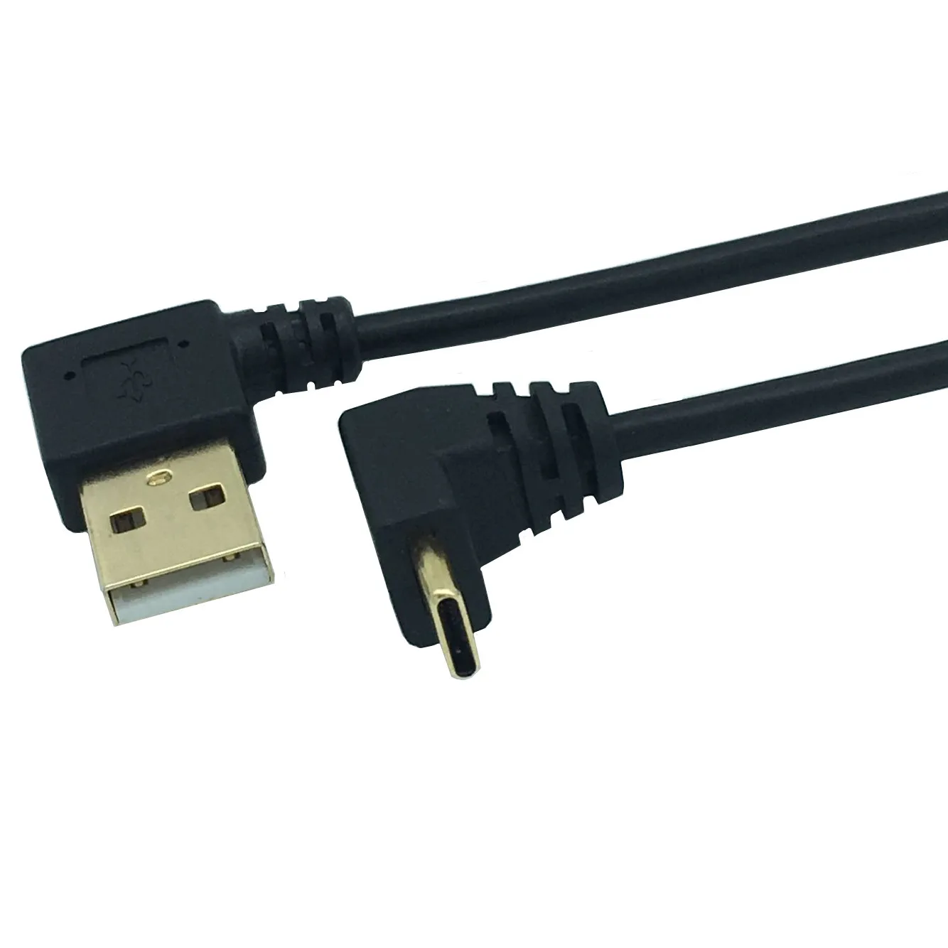 Comprar Cable de carga de sincronización de datos USB 2,0 A macho, convertidor macho de 90 grados arriba abajo, codo de ángulo izquierdo y derecho A USB 3,1 tipo C, 25cm