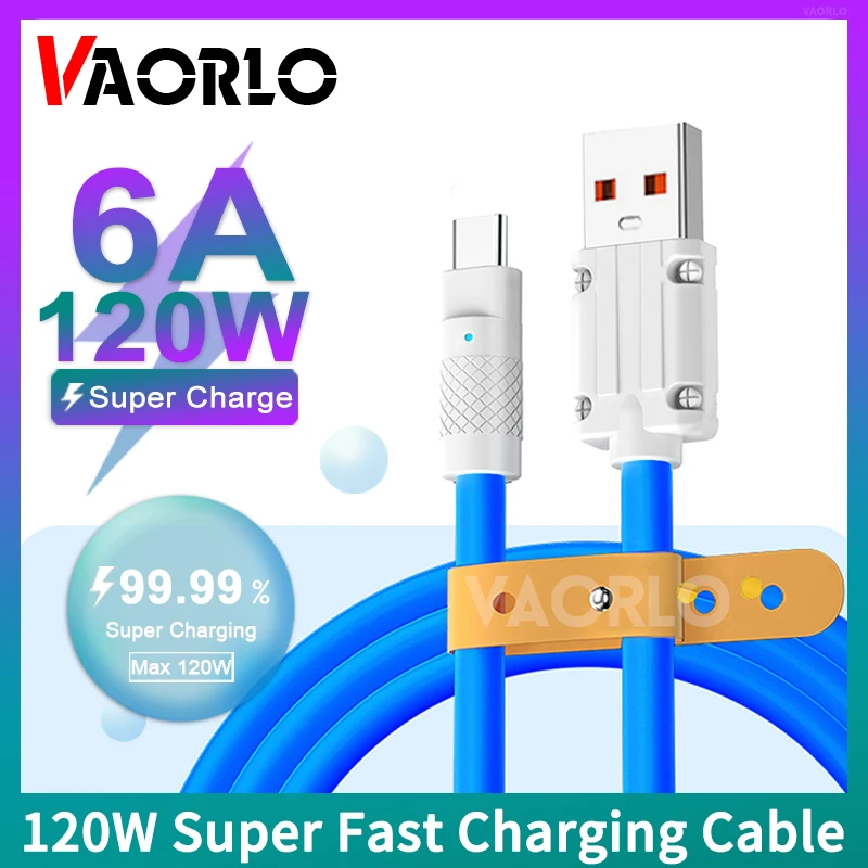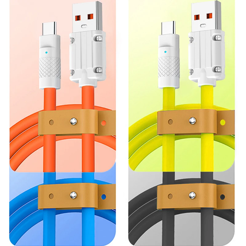 Comprar Cable de carga súper rápida de 1M/1,5 M/2 metros, 6A, 120W, USB a tipo C, Cable de datos llamativos para iPhone y Android