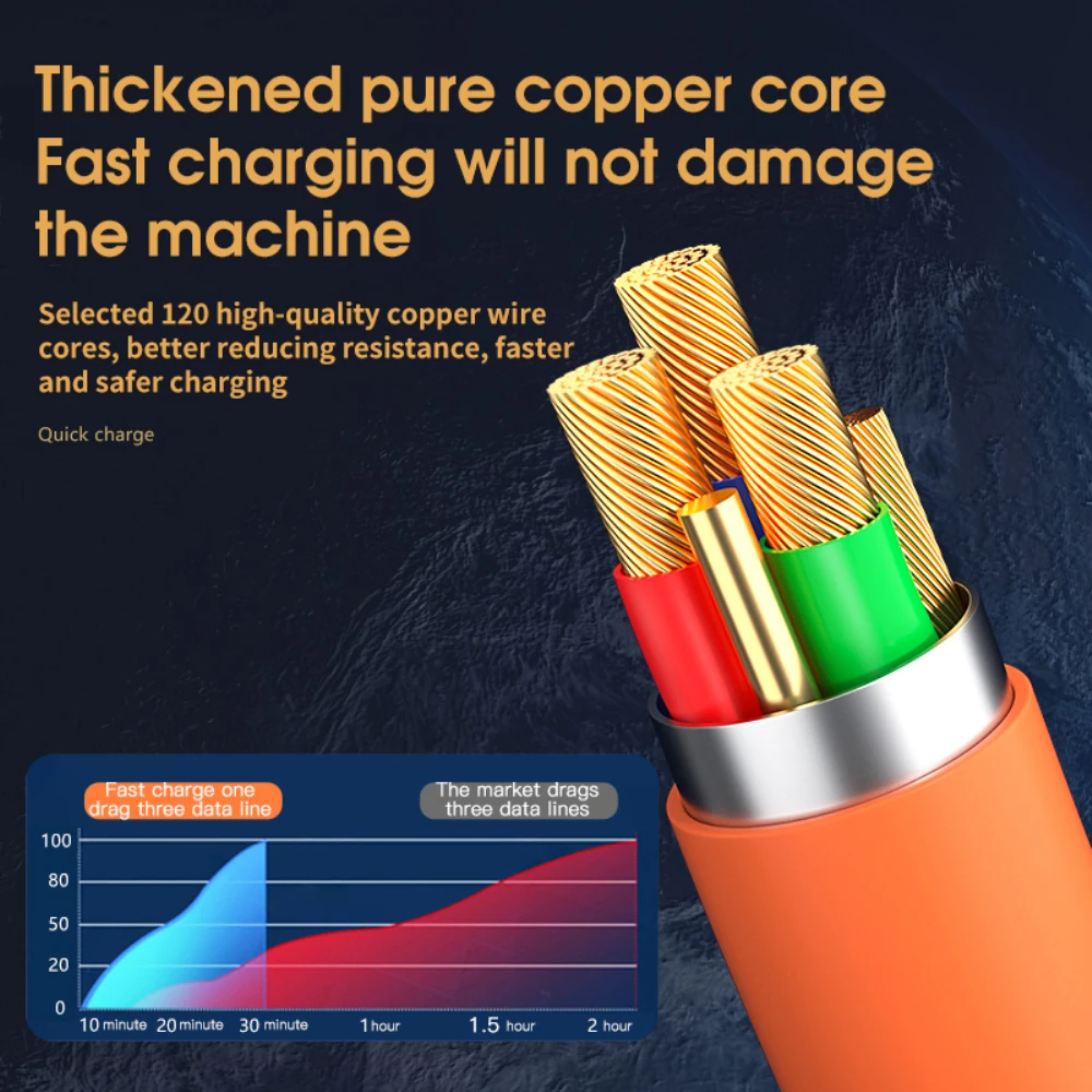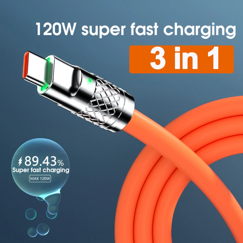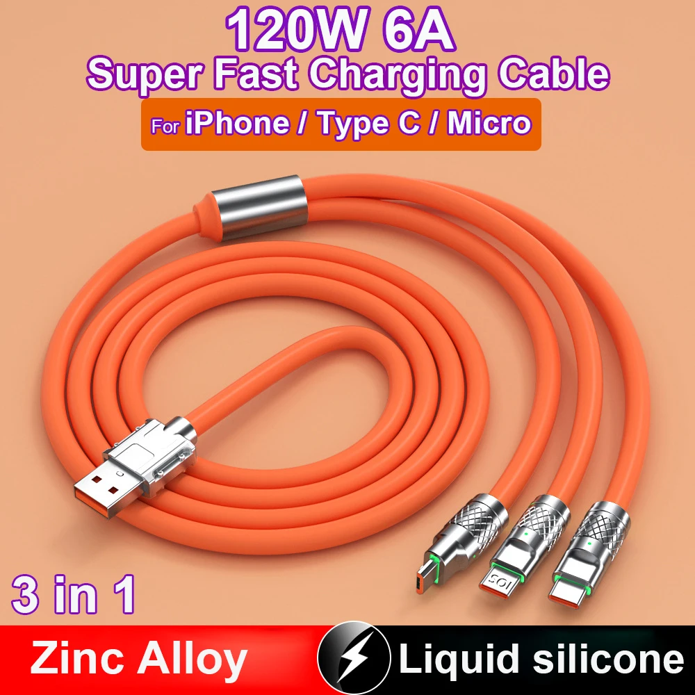 Comprar Cable de carga súper rápida 3 en 1 para iPhone, Xiaomi, Redmi, Samsung, Huawei, accesorios de teléfono, Cable Micro USB tipo C, 120W, 6A