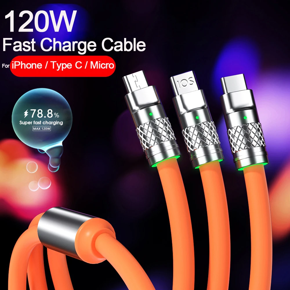 Comprar Cable de carga súper rápida de aleación de Zinc, 120W, para iPhone, Xiaomi, Redmi, POCO, Huawei, OPPO, 6A, tipo C, Micro USB, 3A