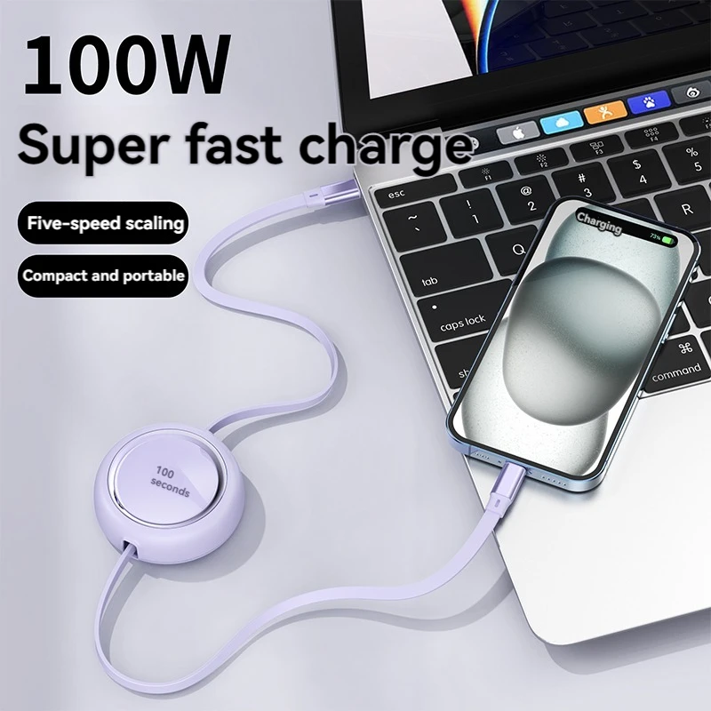 Comprar Cable de carga súper rápida retráctil tipo C, 100w, 6a, 1,2 M, Usb C a C