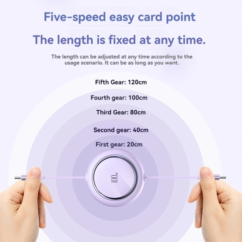 El cable USB de 1,2 M presenta un diseño retráctil, que ofrece flexibilidad y conveniencia para diversos escenarios de carga.